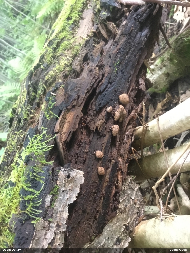 Man šis vairāk izskatās pēc nepilnīgas attīstības (stūrainās sporas arī no tā), tāpēc smalkas detaļas var nebūt precīzas. Priekš Diderma spumarioides atbilst ne tikai pakāje un sporu izmērs, bet arī tipiskais augšanas laiks augustā. Tas, kas mulsina, ir minētā priede, jo citos šīs sugas novērojumos priede nav minēta, un mežs tipiski vairāk nemorāls.