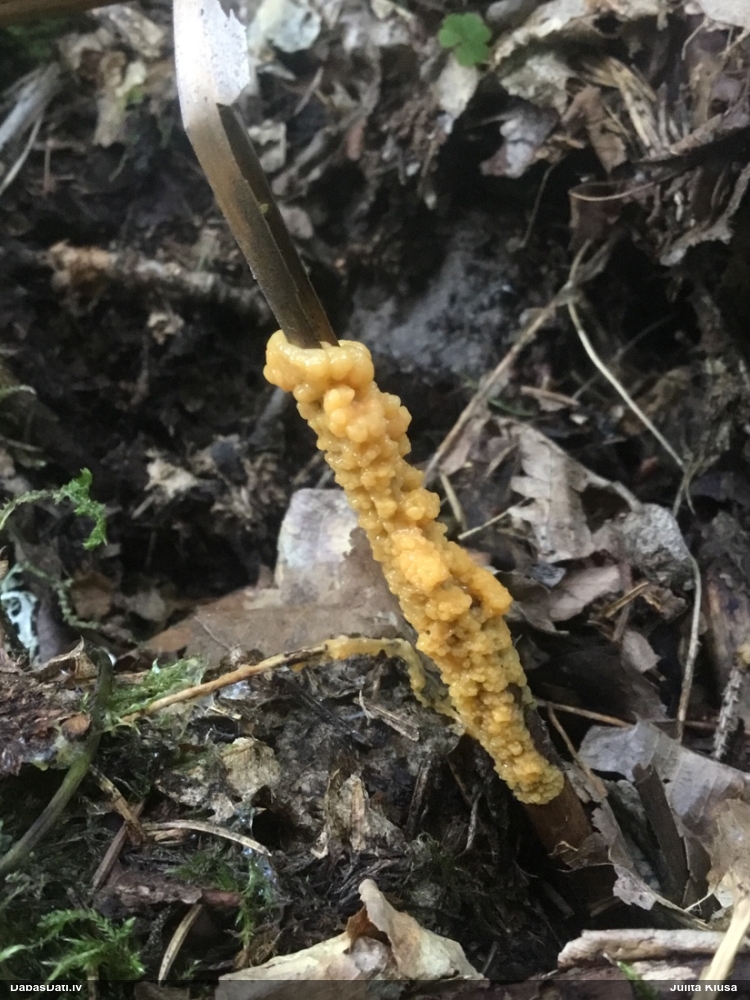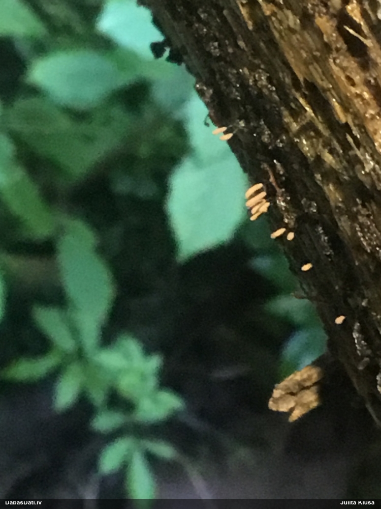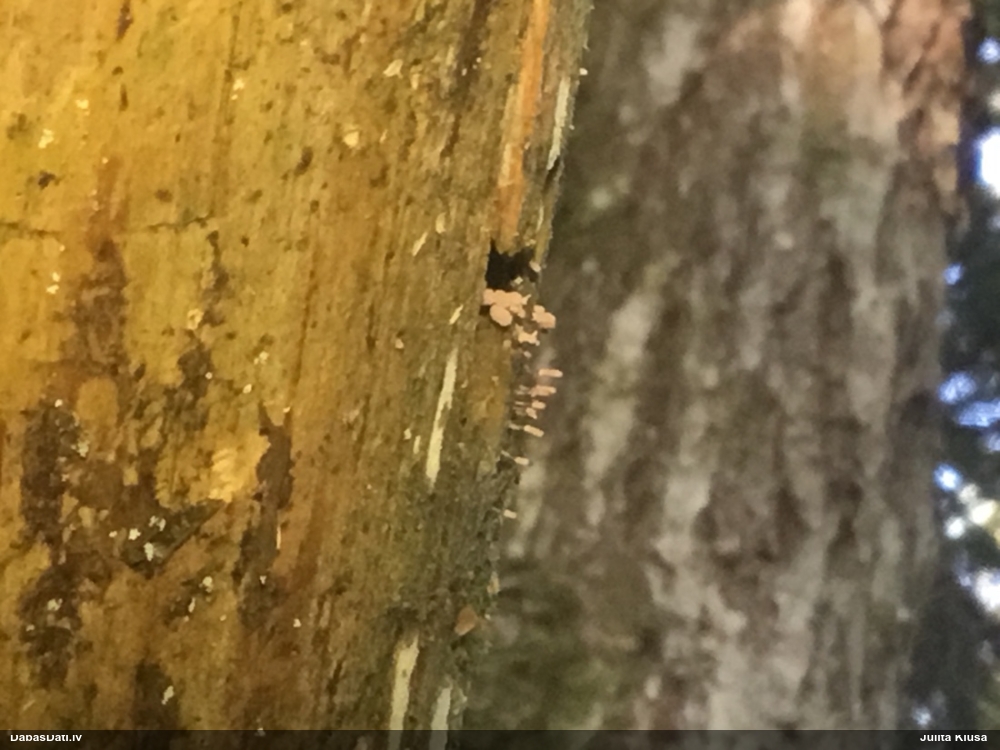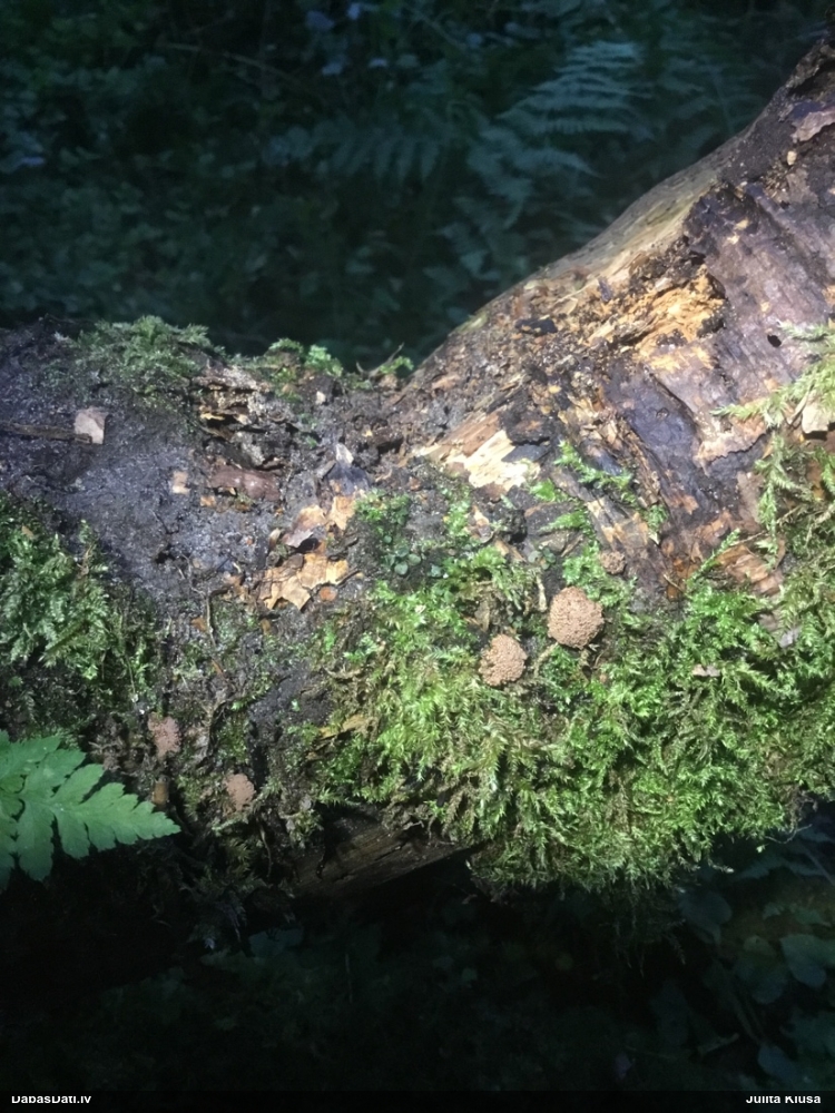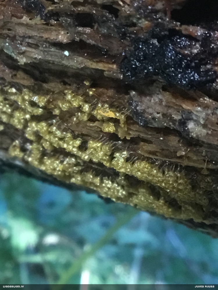 Jā, būtu jauki, ņemot vērā, ka nu jau skaidrāk iezīmējas, uz kā meklēt, un manējais atradums nemaz nebija vēl riktīgi izsporojies, lai arī nobriedis, tā ka arī domāju, ka noteikti cerības vēl ir. Pat šķita, ka manā gadījumā bija arī jaunāki eksemplāri, bet tad atkal sašaubījos, vai tie nav caurspīdīgi-baltgani sveķu pilieni. Ja ir pa vienam gab., tad pārliecība dabā nepavisam nav liela. Varbūt svarīgākais ir ne egles dzīvīgums, bet micēlijs, kas radies uz sveķiem, kas, savukārt, rodas no dzīvām eglēm. Tādā gadījumā drošs fakts ir tikai tas, ka eglei ir jābūt bijušai dzīvai :D. Līdzīgi esmu atradusi arī zeltpūšļu pilienīti Hemitrichia sordivesiculosa, kas raksturīgi aug uz dzīviem lapukokiem, bet es to atradu uz nesen lūzušas apses kritalas. "Dzīva vai nesen dzīva" - varbūt tā var saukt to vajadzīgo statusu.