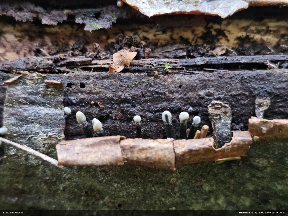 Nu vai tad šis nav Sorocybe resinae micēlijs, uz kura mēdz augt gļotsēne?