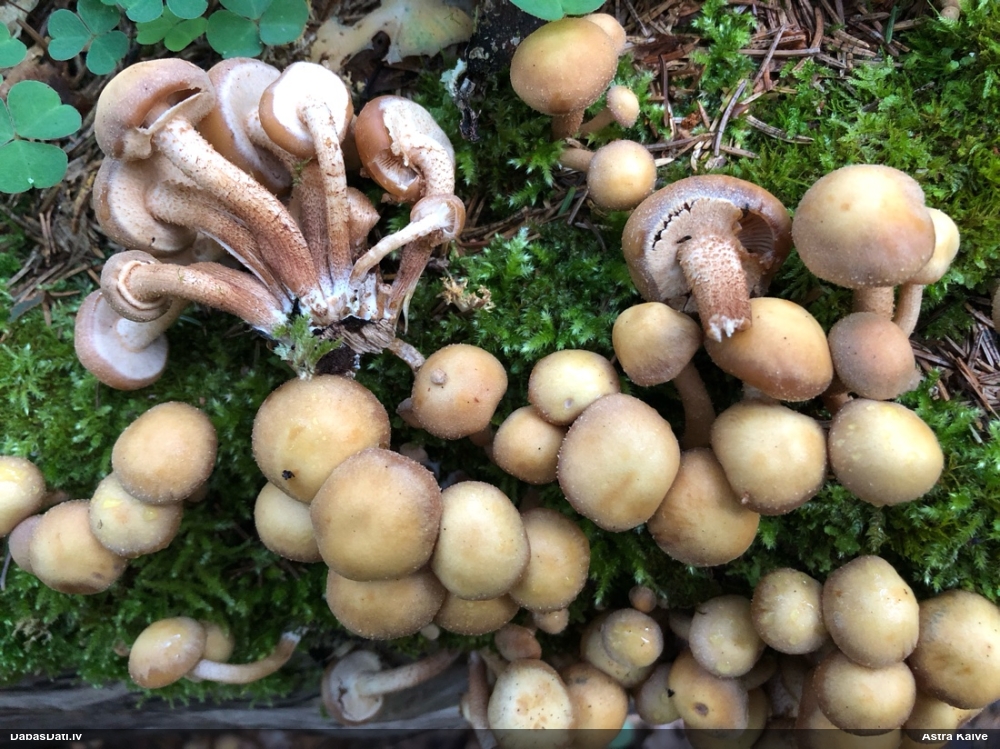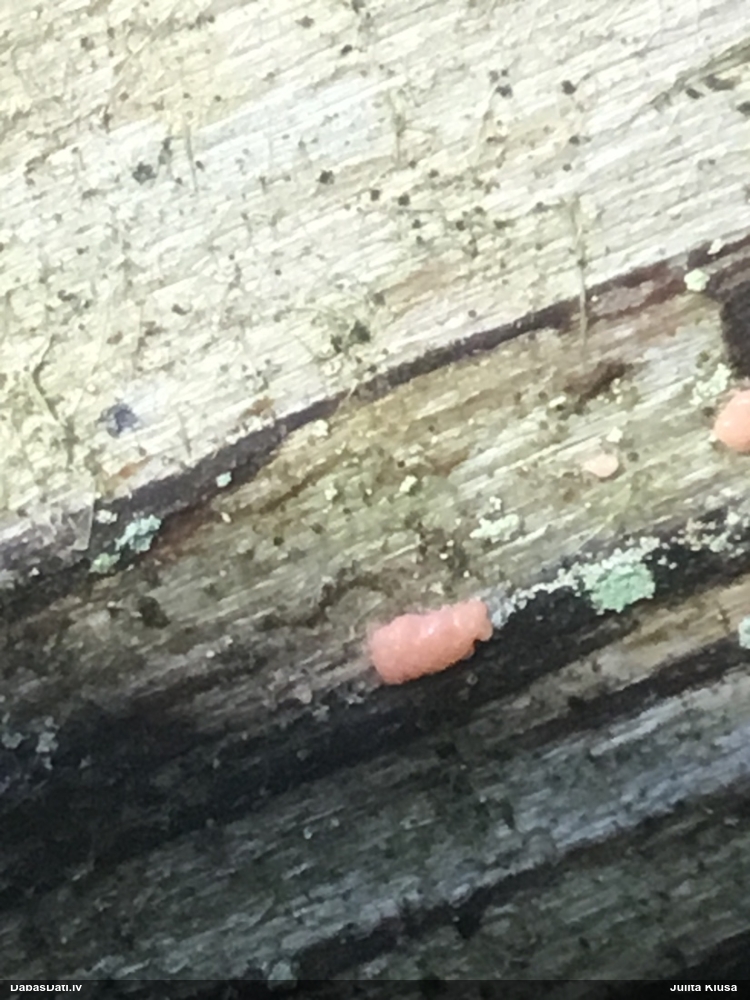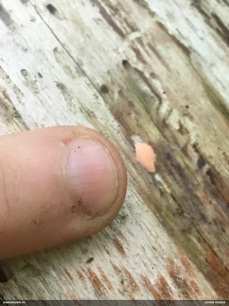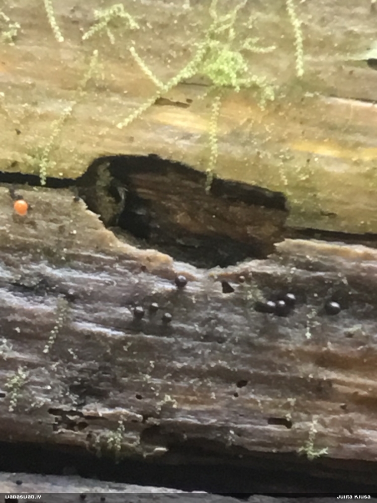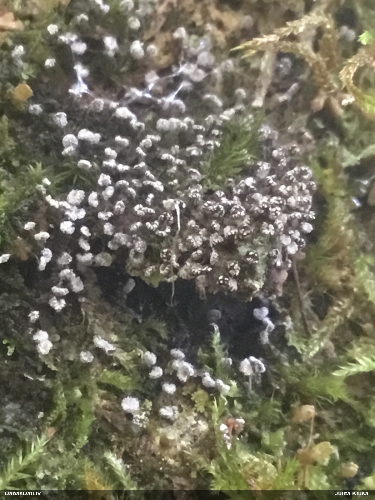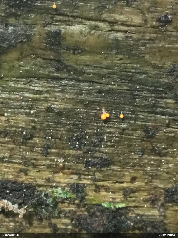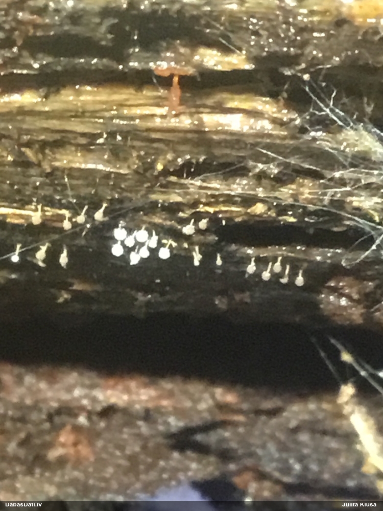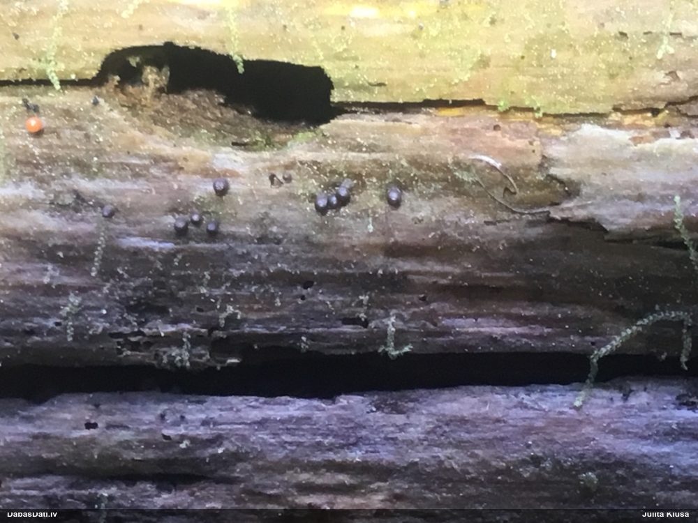 Paldies, Raivo! Ar acu gaišumu man arvien sliktāk, bet mikroskops palīdz. Jā, gribēju teikt, ka paraugam, ja vien nav kāda jutīga atradne, kurai drīkst ievākt tikai mazu gabaliņu, vērts ievākt lielāku gabalu, jo gļotsēnēm patīk kompānija. Un mikroskopa mazajos palielinājumos ar sānu papildus apgaismojumu ir vērts rūpīgi "izstaigāt" visu paraugu. Arī ķērpjus un interesantas sīksēnītes tā var atrast, ko dabā nepamanītu. Ar kriksītēm ir dažādi - pirmās es tā arī tikai citu sugu paraugos pamanīju, bet vēlāk redzēju arī dabā kriskīšu plantācijas - ja to ir daudz, tad var pamanīt jau dabā. Uz sūnām gan ir ekstrēms gadījums, dabā droši nepamanītu, arī eksemplāra noņemšana no sūnas nebija pārāk veiksmīga, tāpēc par noteikšanu mazliet šaubos (sporām mazliet cits tonis). Bet pagaidām citas hipotēzes nav (un konkrētā eksemplāra arī vairs ne).