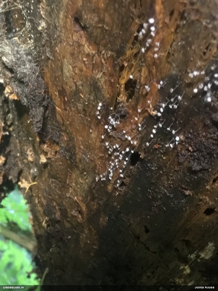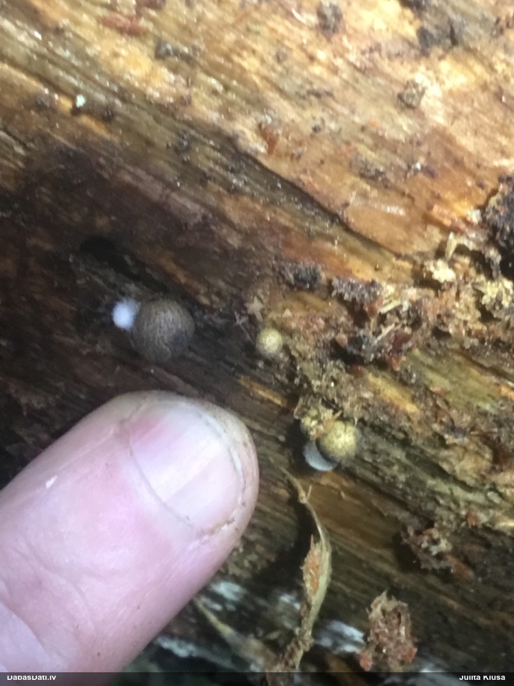 Jā, būtu jauki, ņemot vērā, ka nu jau skaidrāk iezīmējas, uz kā meklēt, un manējais atradums nemaz nebija vēl riktīgi izsporojies, lai arī nobriedis, tā ka arī domāju, ka noteikti cerības vēl ir. Pat šķita, ka manā gadījumā bija arī jaunāki eksemplāri, bet tad atkal sašaubījos, vai tie nav caurspīdīgi-baltgani sveķu pilieni. Ja ir pa vienam gab., tad pārliecība dabā nepavisam nav liela. Varbūt svarīgākais ir ne egles dzīvīgums, bet micēlijs, kas radies uz sveķiem, kas, savukārt, rodas no dzīvām eglēm. Tādā gadījumā drošs fakts ir tikai tas, ka eglei ir jābūt bijušai dzīvai :D. Līdzīgi esmu atradusi arī zeltpūšļu pilienīti Hemitrichia sordivesiculosa, kas raksturīgi aug uz dzīviem lapukokiem, bet es to atradu uz nesen lūzušas apses kritalas. "Dzīva vai nesen dzīva" - varbūt tā var saukt to vajadzīgo statusu.