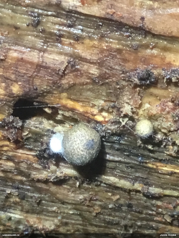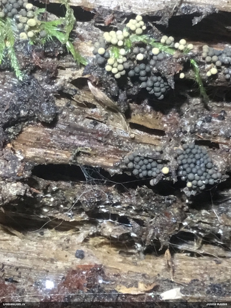 Man šis vairāk izskatās pēc nepilnīgas attīstības (stūrainās sporas arī no tā), tāpēc smalkas detaļas var nebūt precīzas. Priekš Diderma spumarioides atbilst ne tikai pakāje un sporu izmērs, bet arī tipiskais augšanas laiks augustā. Tas, kas mulsina, ir minētā priede, jo citos šīs sugas novērojumos priede nav minēta, un mežs tipiski vairāk nemorāls.