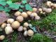 Vairākas galviņas uz pagaras kājiņas, sporu mākonis dzeltens (ne sarkans, kā šunu daudzpilītei).