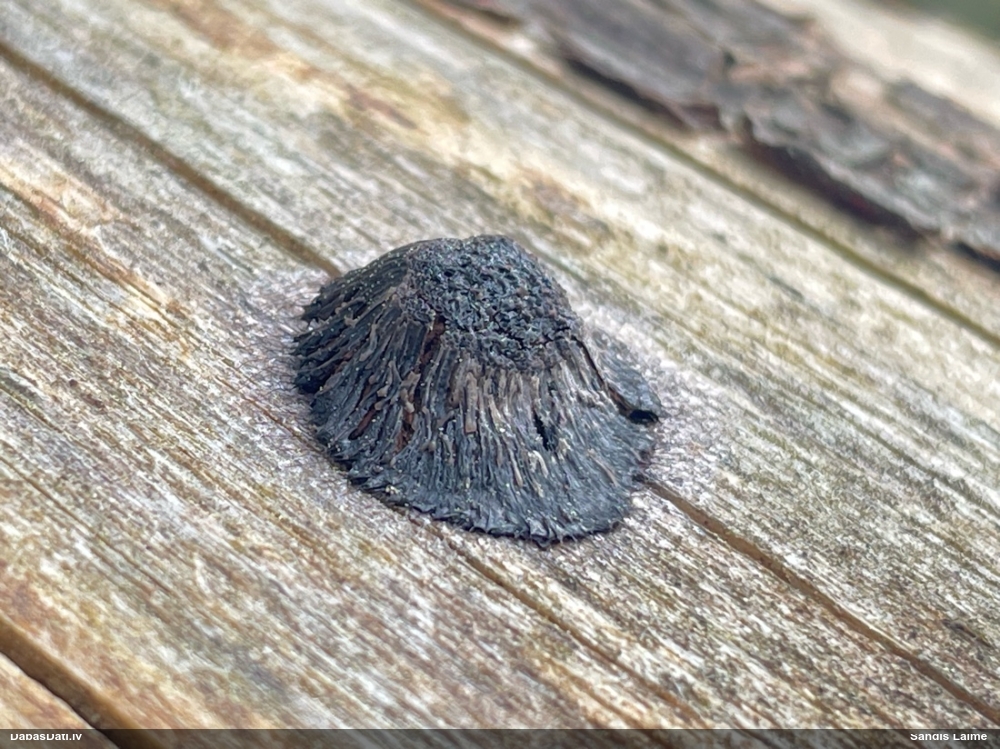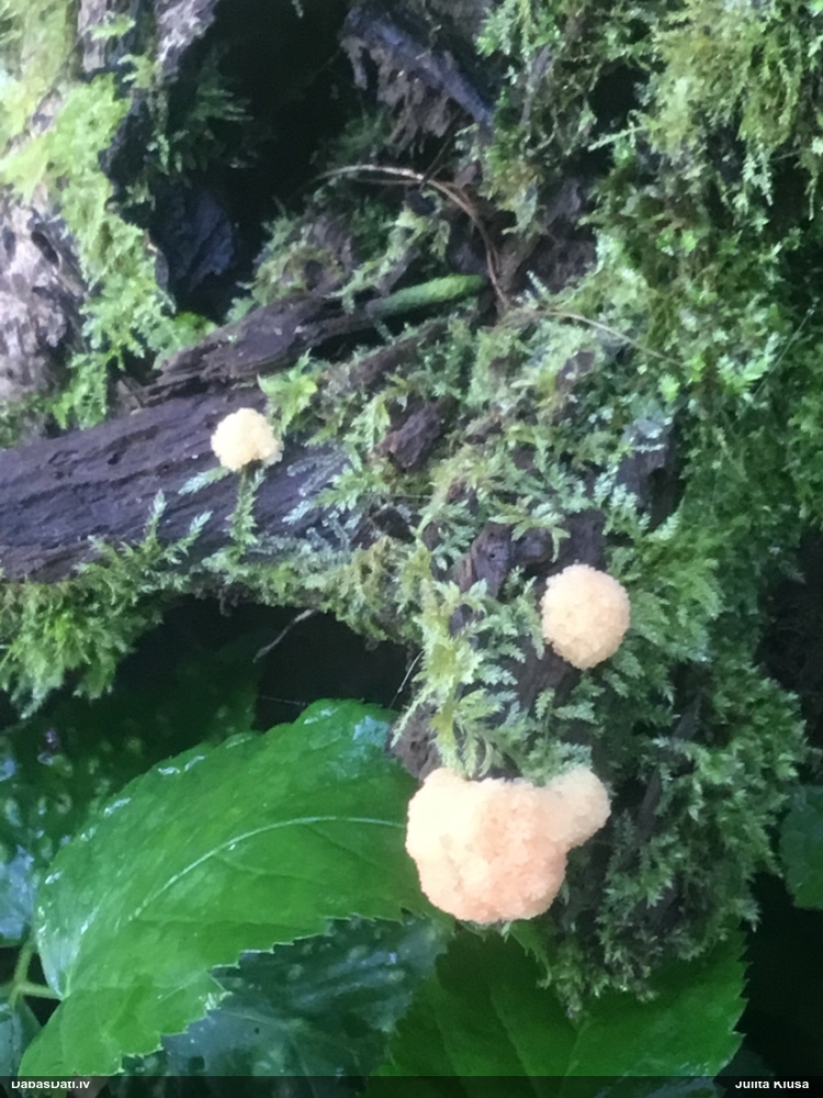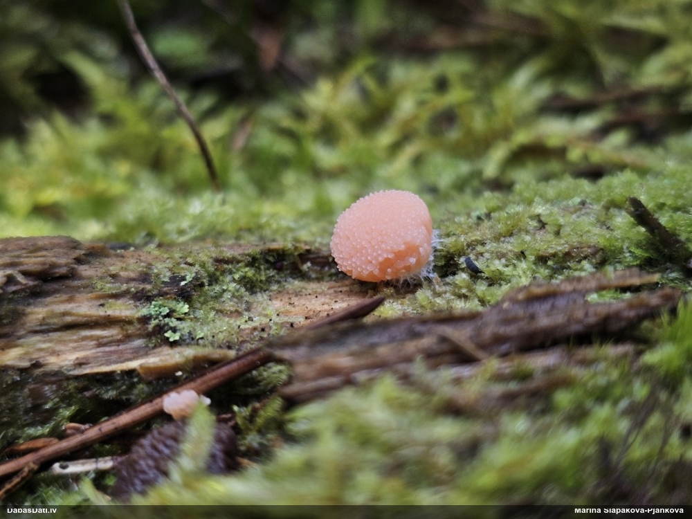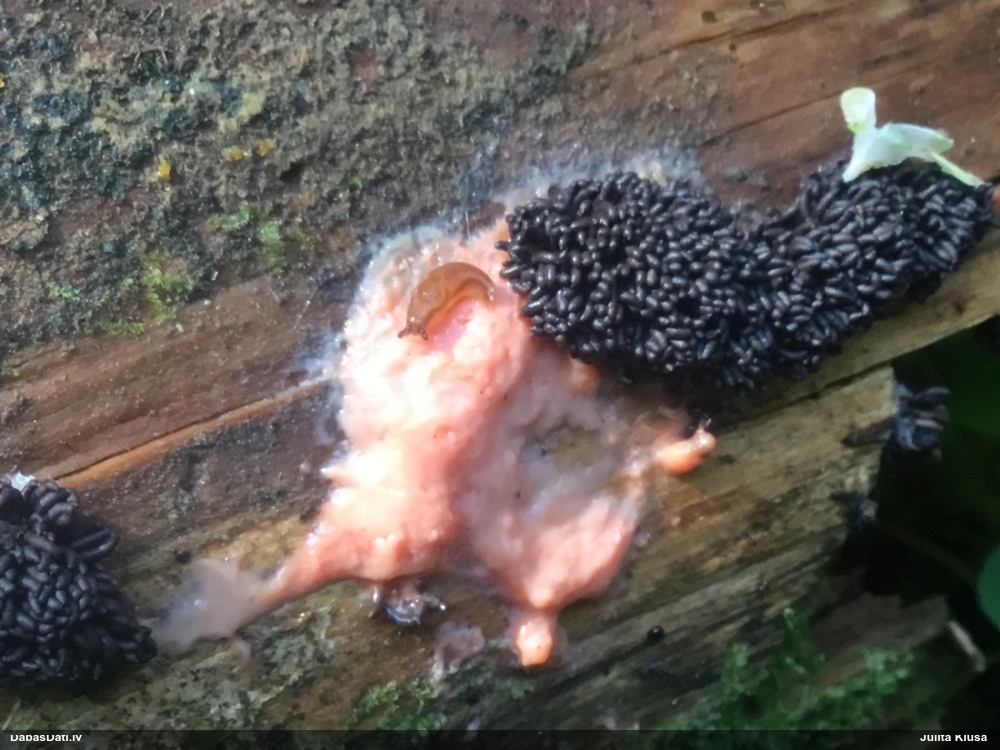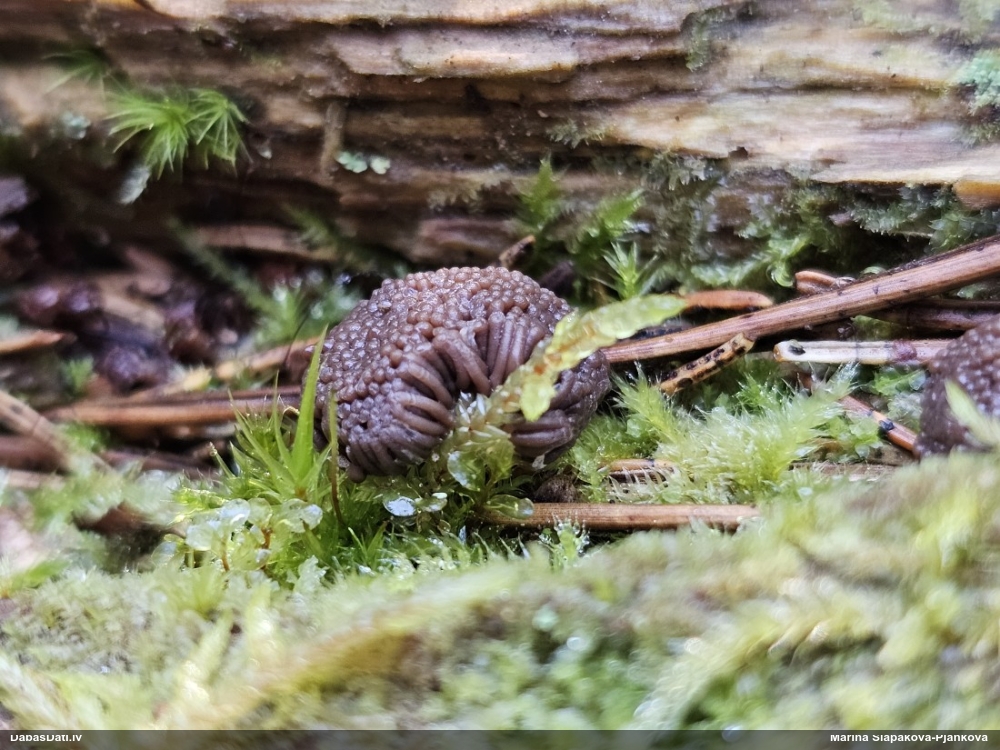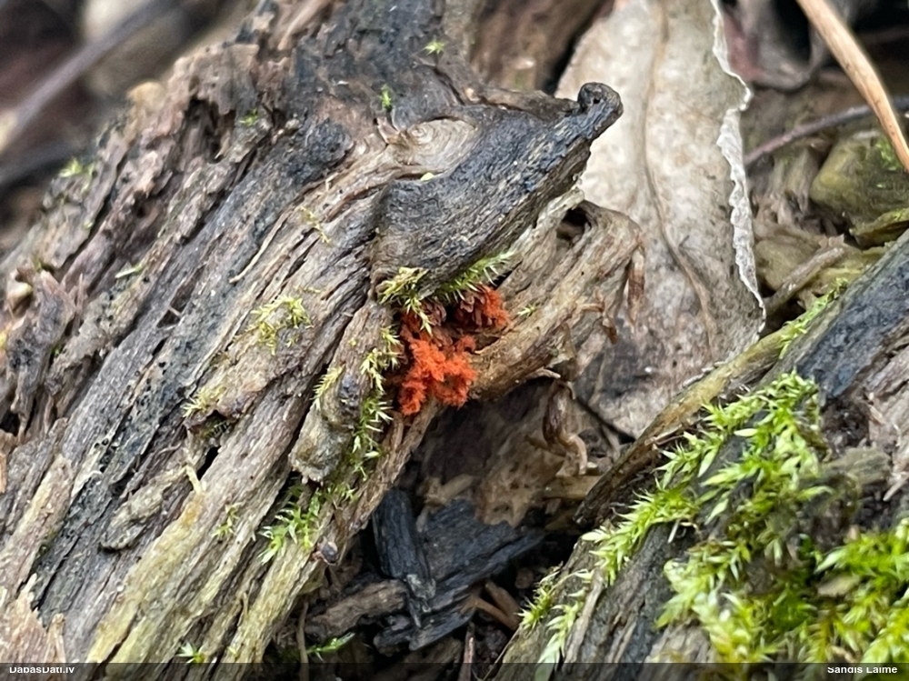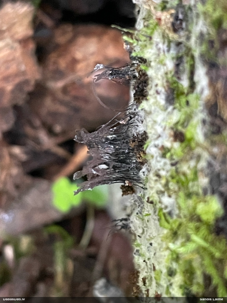 Paldies, Raivo! Ar acu gaišumu man arvien sliktāk, bet mikroskops palīdz. Jā, gribēju teikt, ka paraugam, ja vien nav kāda jutīga atradne, kurai drīkst ievākt tikai mazu gabaliņu, vērts ievākt lielāku gabalu, jo gļotsēnēm patīk kompānija. Un mikroskopa mazajos palielinājumos ar sānu papildus apgaismojumu ir vērts rūpīgi "izstaigāt" visu paraugu. Arī ķērpjus un interesantas sīksēnītes tā var atrast, ko dabā nepamanītu. Ar kriksītēm ir dažādi - pirmās es tā arī tikai citu sugu paraugos pamanīju, bet vēlāk redzēju arī dabā kriskīšu plantācijas - ja to ir daudz, tad var pamanīt jau dabā. Uz sūnām gan ir ekstrēms gadījums, dabā droši nepamanītu, arī eksemplāra noņemšana no sūnas nebija pārāk veiksmīga, tāpēc par noteikšanu mazliet šaubos (sporām mazliet cits tonis). Bet pagaidām citas hipotēzes nav (un konkrētā eksemplāra arī vairs ne).
