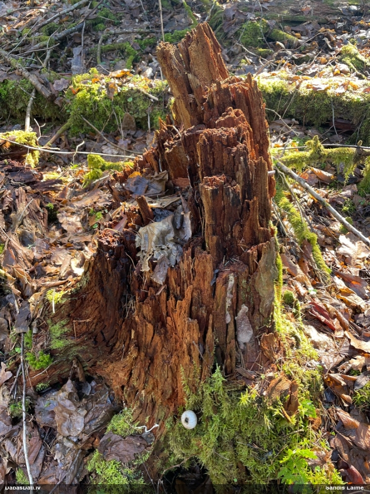 Foto diemžēl nav, bet , cik atceros, auga uz horizontāla paveca nozāģēta celma virsmas. Mežs - jauktu koku, tāda reljefaina vieta :)