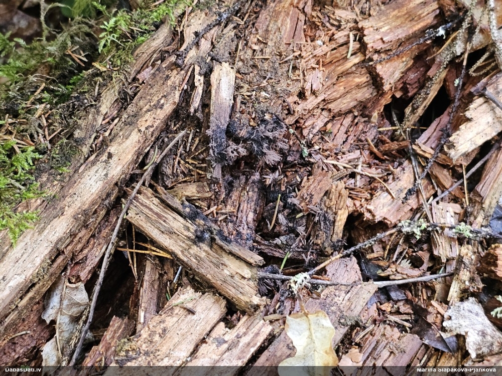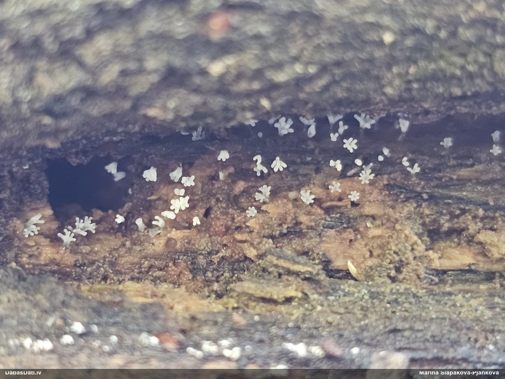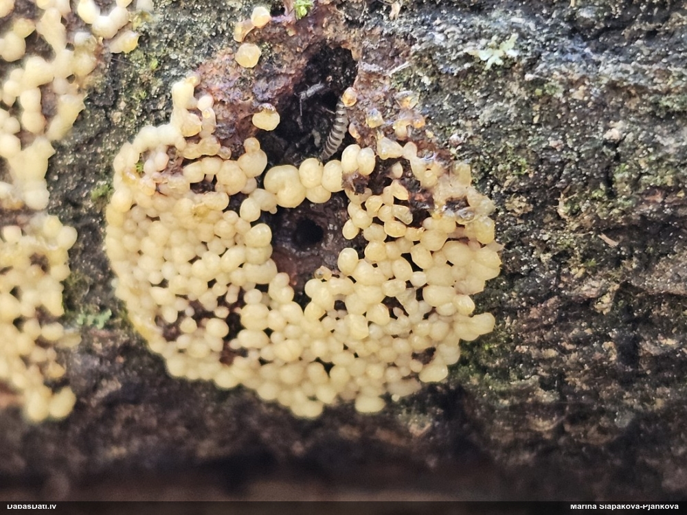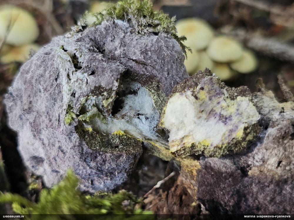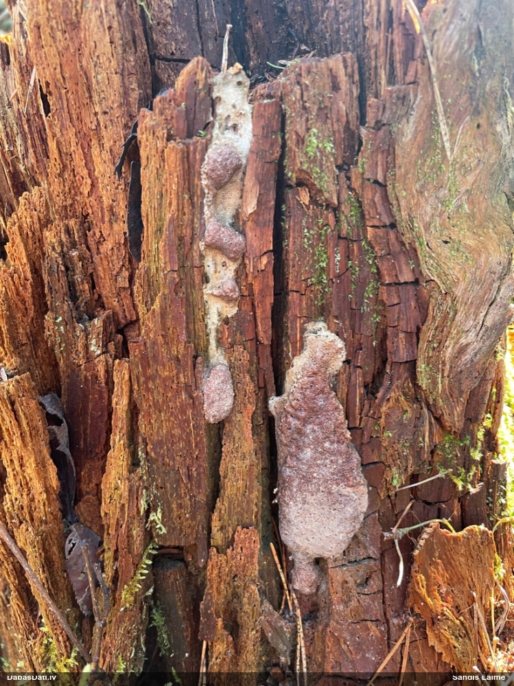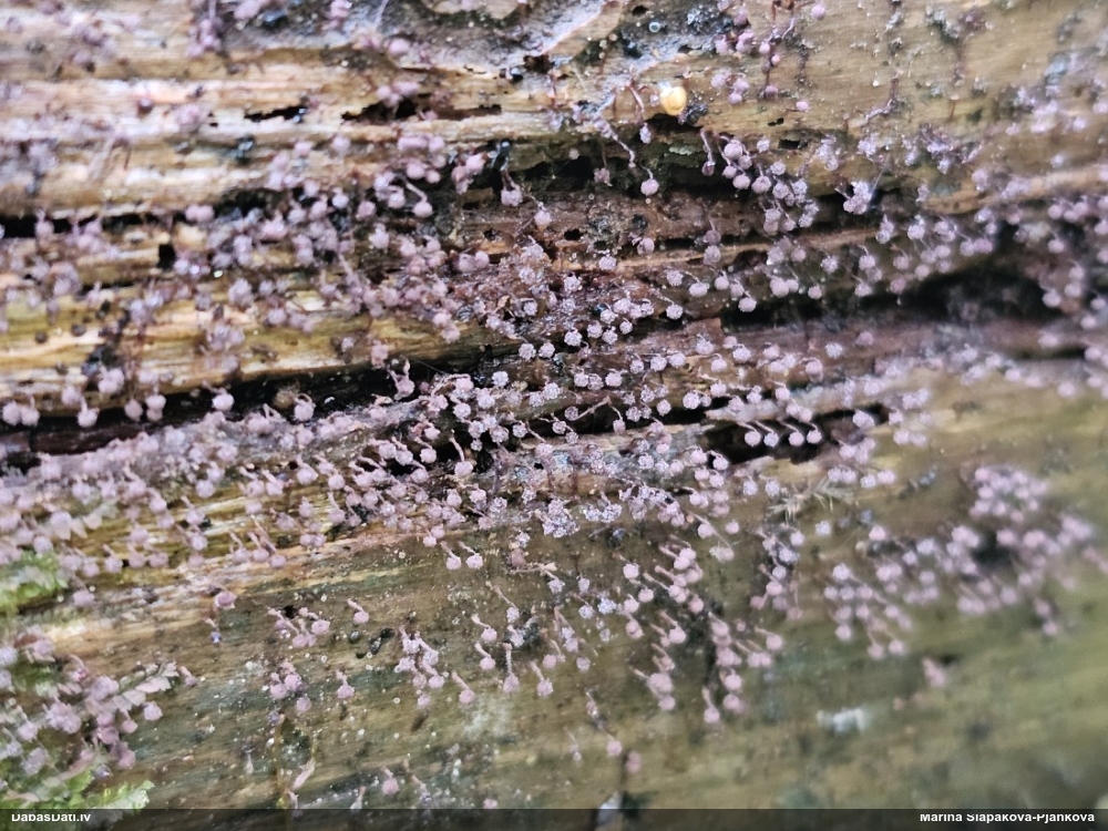 Nu vai tad šis nav Sorocybe resinae micēlijs, uz kura mēdz augt gļotsēne?