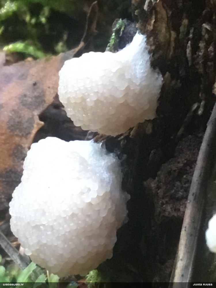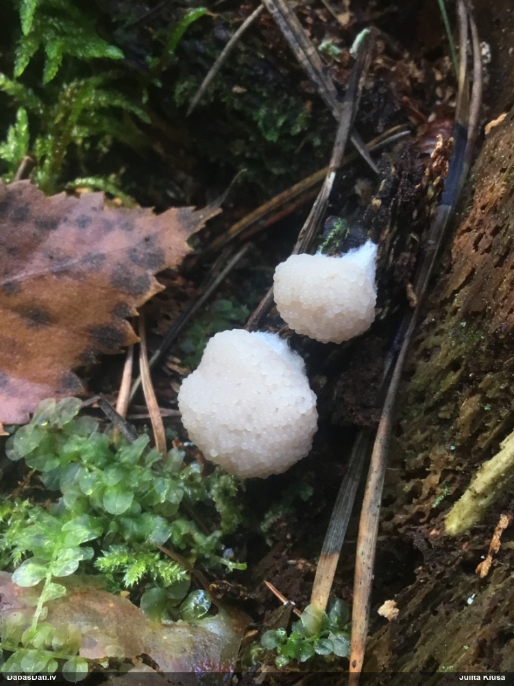 Man šis vairāk izskatās pēc nepilnīgas attīstības (stūrainās sporas arī no tā), tāpēc smalkas detaļas var nebūt precīzas. Priekš Diderma spumarioides atbilst ne tikai pakāje un sporu izmērs, bet arī tipiskais augšanas laiks augustā. Tas, kas mulsina, ir minētā priede, jo citos šīs sugas novērojumos priede nav minēta, un mežs tipiski vairāk nemorāls.