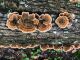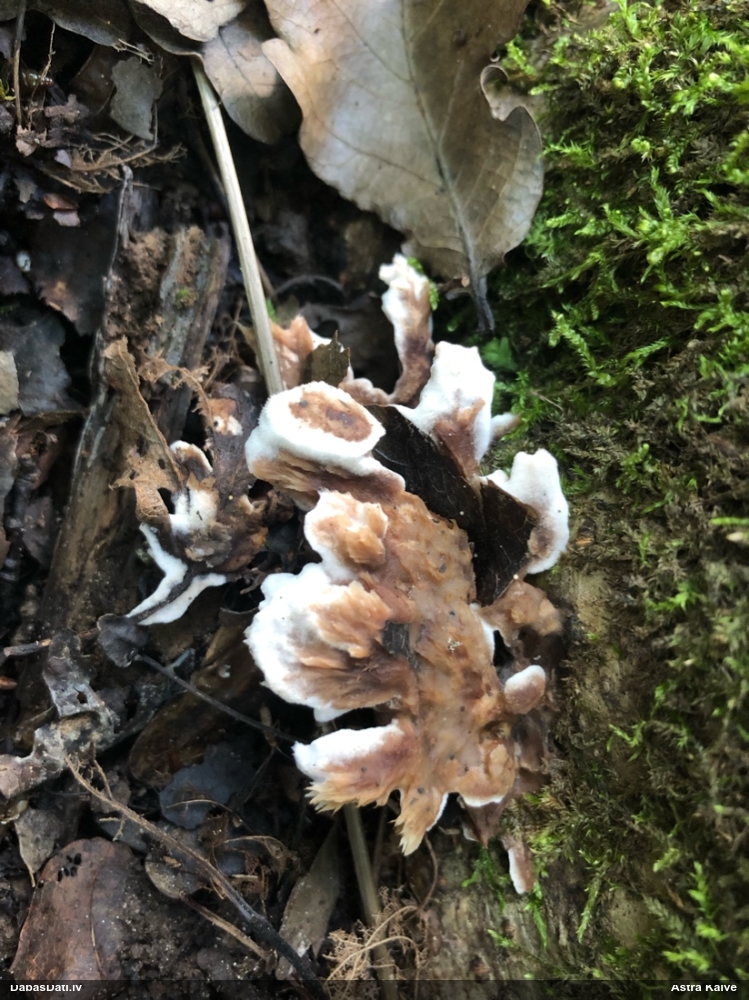 Paldies par paraugu! Paraugā augļķermeņi gan bija ļoti cieti, līdz galam nenobrieduši. Jauna eksemplāra krāsa var būt nozīmīga noteikšanā, bet svarīgi arī nobriedināt (turot mitrākā vietā), citādi perīdiju noņemt mikroskopēšanai ir praktiski neiespējami. Šajā gadījumā mazu gabaliņu izdevās atmiekšķēt un nodabūt, kas sarežģītākos gadījumos varētu būt nepietiekami. Pēc izmēra un perīdija pazīmēm te varētu būt divi varianti L.irregularis un L.epidendrum, kas esot viens no grūtāk atšķiramajiem sugu pāriem. L.epidendrum vairāk raksturīgi, kā es tos saucu, pārstaipi uz augļķermeņa virsmas, kas te ir ļoti labi redzami, tāpēc izšķīros par parastāko sugu.