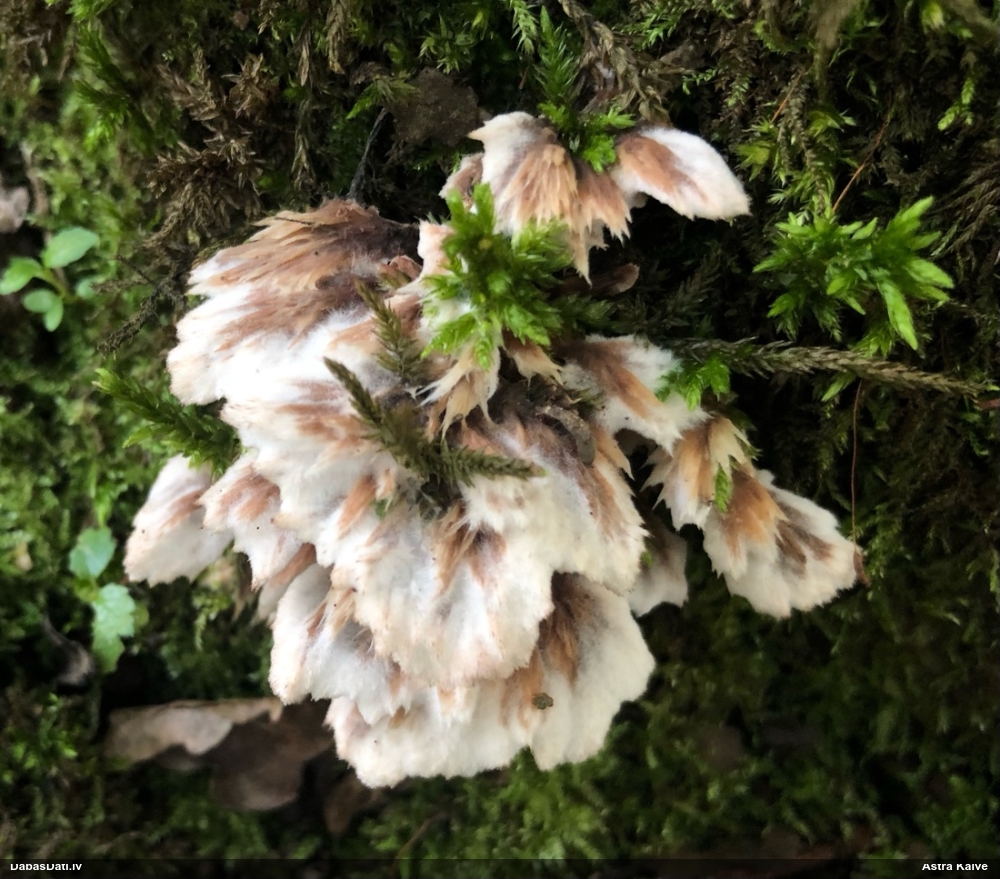 neatceros, kad tik ļoti nevarējusi sagaidīt mikroskopēšanu savam paraugam, kas identisks ar šo novērojumu. Mizaine ir. Vistuvāk no tā, ko paguvu izpētīt, tiešām kārpainā mizaine, bet kapilīcijs, manuprāt, ir mazliet citādāks, nemaz nerunājot par to, ka tā ļoti daudz un pat staipīgs (kārpainajai kapilīcijs maz un nestaipās). Un Neuberta aprakstā tikko iztulkoju par substrātu "Tā substrāts ir gandrīz tikai lapu koku miza, tikai vienā Picea gadījumā, dažreiz arī uz sūnām". Bet mums abām ir pārliecinošas egles un kopīgs izskats, kas atšķiras no kārpainās, nu neticu, ka varētu būt kārpainā. Ticamāk, ka zinātnei jauna suga :D. bet es vēl papētīšu, varbūt kaut kur tomēr ir kas tāds aprakstīts.
