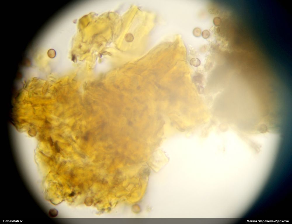 Šo mēs neatpazinām, jo suga atklāta tikai 2022. gadā, bet tās sporas ar apaļajiem "dobumiem" šai sugai ir tik ļoti raksturīgas! Viss pārējais arī kā no topošās grāmatas :))