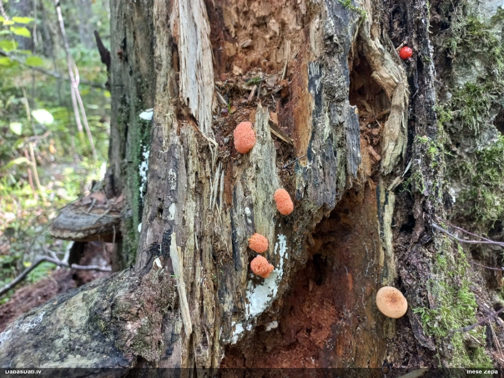 Jā, būtu jauki, ņemot vērā, ka nu jau skaidrāk iezīmējas, uz kā meklēt, un manējais atradums nemaz nebija vēl riktīgi izsporojies, lai arī nobriedis, tā ka arī domāju, ka noteikti cerības vēl ir. Pat šķita, ka manā gadījumā bija arī jaunāki eksemplāri, bet tad atkal sašaubījos, vai tie nav caurspīdīgi-baltgani sveķu pilieni. Ja ir pa vienam gab., tad pārliecība dabā nepavisam nav liela. Varbūt svarīgākais ir ne egles dzīvīgums, bet micēlijs, kas radies uz sveķiem, kas, savukārt, rodas no dzīvām eglēm. Tādā gadījumā drošs fakts ir tikai tas, ka eglei ir jābūt bijušai dzīvai :D. Līdzīgi esmu atradusi arī zeltpūšļu pilienīti Hemitrichia sordivesiculosa, kas raksturīgi aug uz dzīviem lapukokiem, bet es to atradu uz nesen lūzušas apses kritalas. "Dzīva vai nesen dzīva" - varbūt tā var saukt to vajadzīgo statusu.