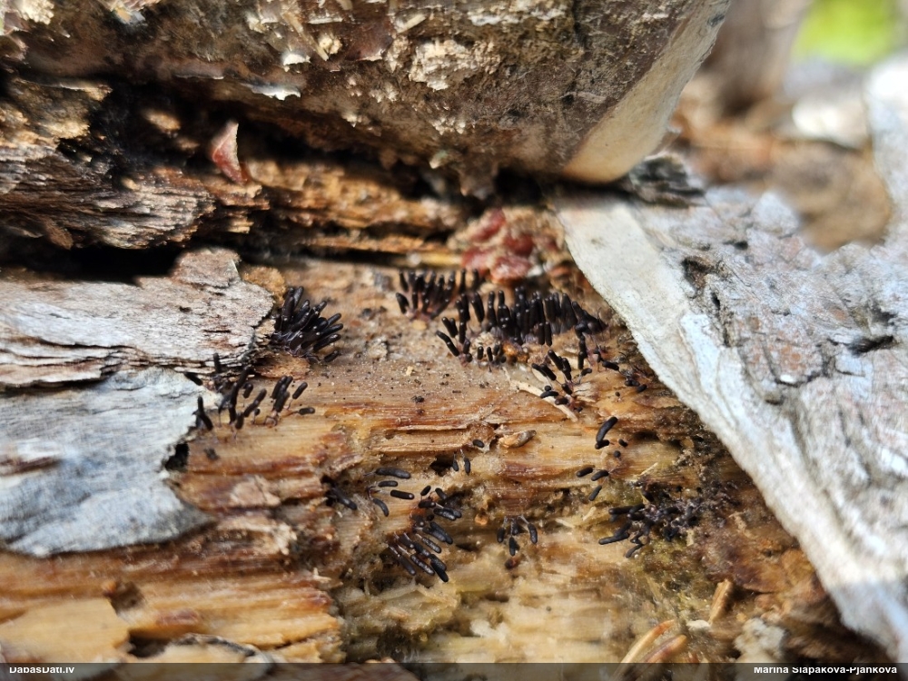 Nu vai tad šis nav Sorocybe resinae micēlijs, uz kura mēdz augt gļotsēne?
