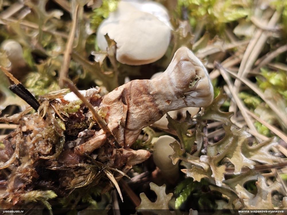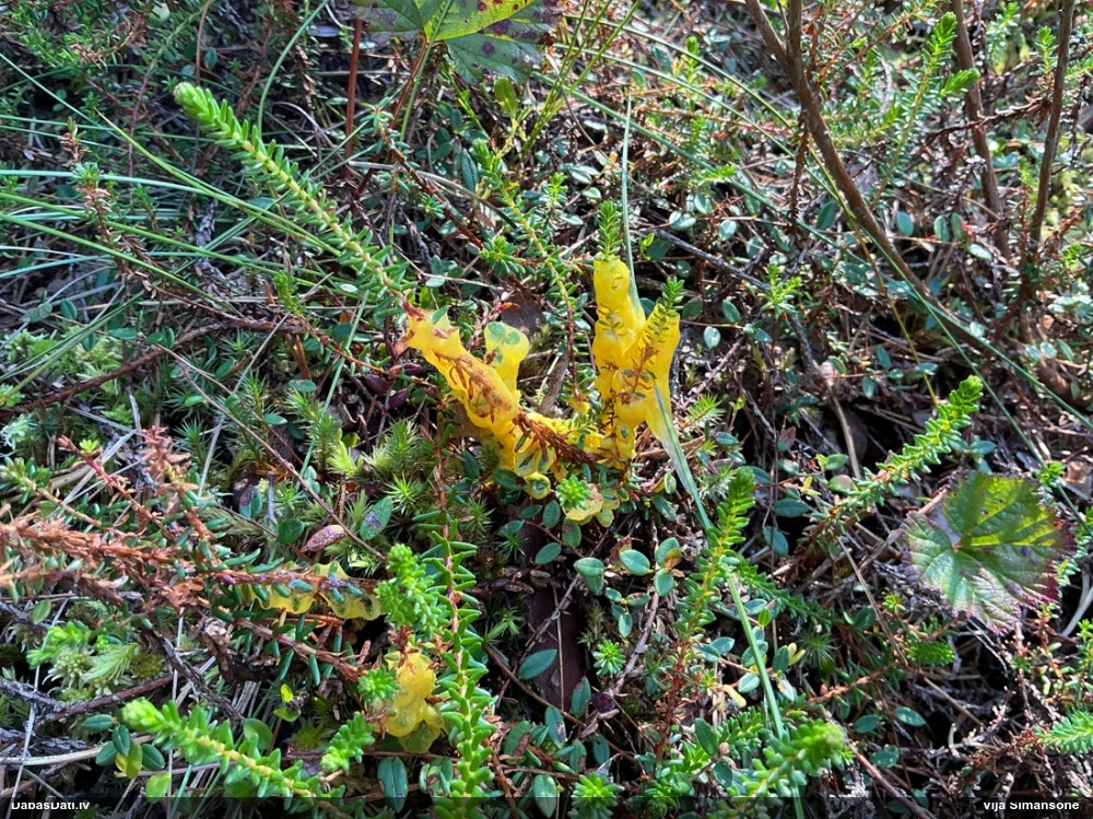 Foto diemžēl nav, bet , cik atceros, auga uz horizontāla paveca nozāģēta celma virsmas. Mežs - jauktu koku, tāda reljefaina vieta :)