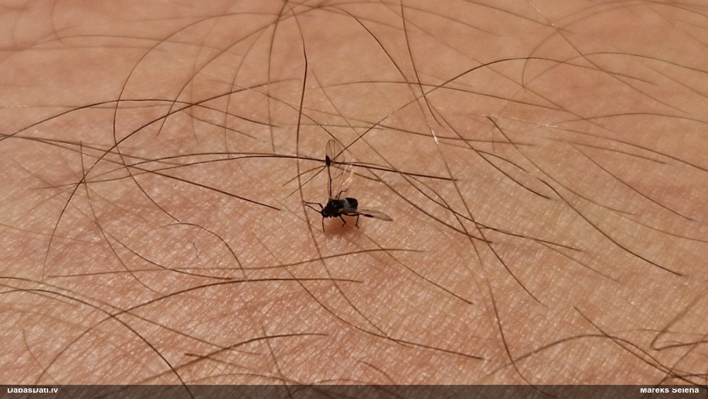 Man jau šķiet, ka cenšanās tikt pie nosaukuma bijusi tik veiksmīga, ka neredzu pat vajadzību mikroskopēt :), apskatīju tikai tuvplānā un pamērīju garumu (kas te nebija), bet kājiņa ir proporcionāli gara (nevis īsa, kā rakstīts), kas arī redzams 1.-2.foto. Bet interesantākais te ir cits - uz sūnas atradās arī jauka kriksīte, kuru ielikšu atsevišķā novērojumā. Ieteiktu nākmreiz nejauši ievākt mazliet vairāk eksemplāru, ne vienu vien. :D