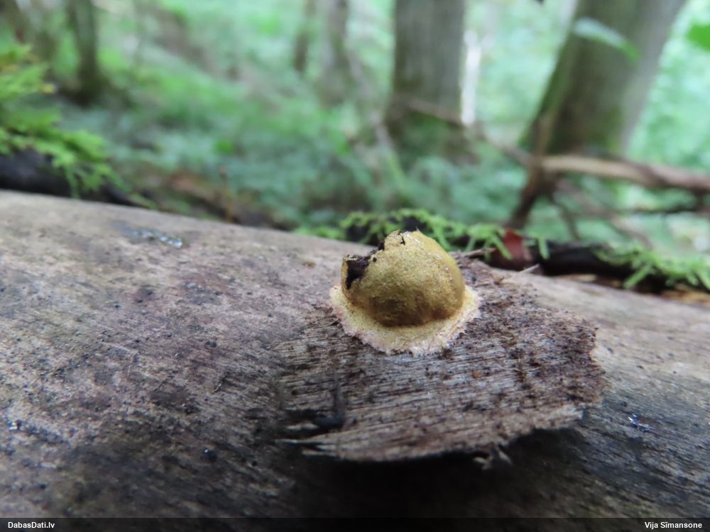 Jā, būtu jauki, ņemot vērā, ka nu jau skaidrāk iezīmējas, uz kā meklēt, un manējais atradums nemaz nebija vēl riktīgi izsporojies, lai arī nobriedis, tā ka arī domāju, ka noteikti cerības vēl ir. Pat šķita, ka manā gadījumā bija arī jaunāki eksemplāri, bet tad atkal sašaubījos, vai tie nav caurspīdīgi-baltgani sveķu pilieni. Ja ir pa vienam gab., tad pārliecība dabā nepavisam nav liela. Varbūt svarīgākais ir ne egles dzīvīgums, bet micēlijs, kas radies uz sveķiem, kas, savukārt, rodas no dzīvām eglēm. Tādā gadījumā drošs fakts ir tikai tas, ka eglei ir jābūt bijušai dzīvai :D. Līdzīgi esmu atradusi arī zeltpūšļu pilienīti Hemitrichia sordivesiculosa, kas raksturīgi aug uz dzīviem lapukokiem, bet es to atradu uz nesen lūzušas apses kritalas. "Dzīva vai nesen dzīva" - varbūt tā var saukt to vajadzīgo statusu.