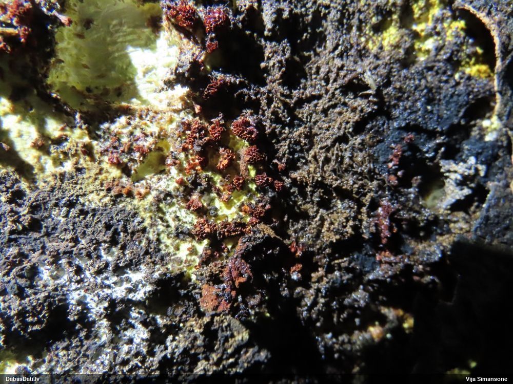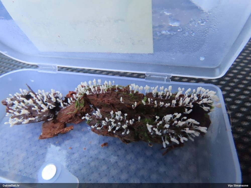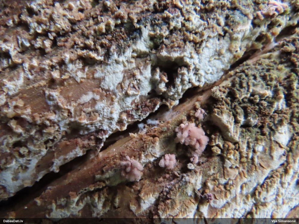 neatceros, kad tik ļoti nevarējusi sagaidīt mikroskopēšanu savam paraugam, kas identisks ar šo novērojumu. Mizaine ir. Vistuvāk no tā, ko paguvu izpētīt, tiešām kārpainā mizaine, bet kapilīcijs, manuprāt, ir mazliet citādāks, nemaz nerunājot par to, ka tā ļoti daudz un pat staipīgs (kārpainajai kapilīcijs maz un nestaipās). Un Neuberta aprakstā tikko iztulkoju par substrātu "Tā substrāts ir gandrīz tikai lapu koku miza, tikai vienā Picea gadījumā, dažreiz arī uz sūnām". Bet mums abām ir pārliecinošas egles un kopīgs izskats, kas atšķiras no kārpainās, nu neticu, ka varētu būt kārpainā. Ticamāk, ka zinātnei jauna suga :D. bet es vēl papētīšu, varbūt kaut kur tomēr ir kas tāds aprakstīts.