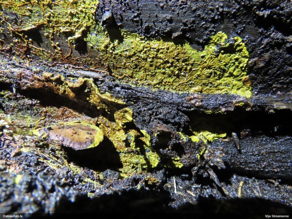 Nu vai tad šis nav Sorocybe resinae micēlijs, uz kura mēdz augt gļotsēne?