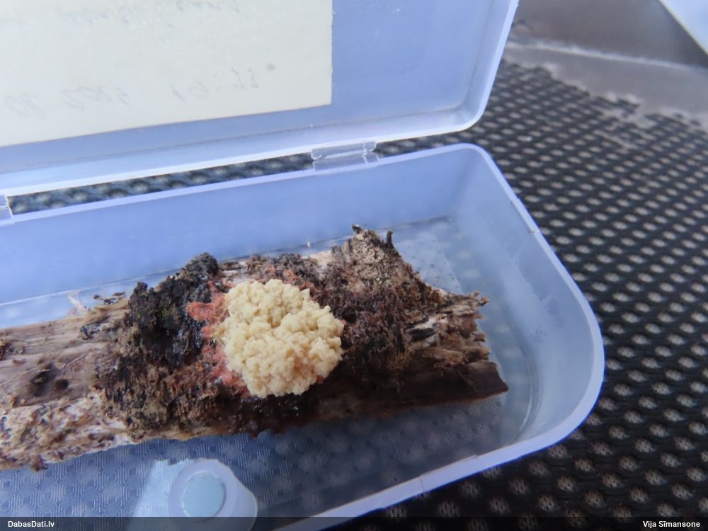 Man šis vairāk izskatās pēc nepilnīgas attīstības (stūrainās sporas arī no tā), tāpēc smalkas detaļas var nebūt precīzas. Priekš Diderma spumarioides atbilst ne tikai pakāje un sporu izmērs, bet arī tipiskais augšanas laiks augustā. Tas, kas mulsina, ir minētā priede, jo citos šīs sugas novērojumos priede nav minēta, un mežs tipiski vairāk nemorāls.