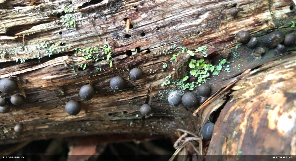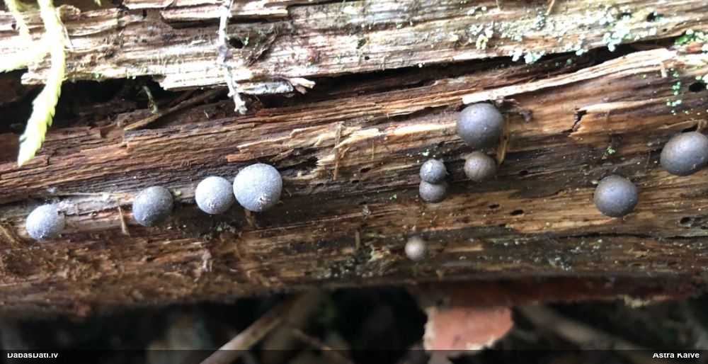 Paldies, Raivo! Ar acu gaišumu man arvien sliktāk, bet mikroskops palīdz. Jā, gribēju teikt, ka paraugam, ja vien nav kāda jutīga atradne, kurai drīkst ievākt tikai mazu gabaliņu, vērts ievākt lielāku gabalu, jo gļotsēnēm patīk kompānija. Un mikroskopa mazajos palielinājumos ar sānu papildus apgaismojumu ir vērts rūpīgi "izstaigāt" visu paraugu. Arī ķērpjus un interesantas sīksēnītes tā var atrast, ko dabā nepamanītu. Ar kriksītēm ir dažādi - pirmās es tā arī tikai citu sugu paraugos pamanīju, bet vēlāk redzēju arī dabā kriskīšu plantācijas - ja to ir daudz, tad var pamanīt jau dabā. Uz sūnām gan ir ekstrēms gadījums, dabā droši nepamanītu, arī eksemplāra noņemšana no sūnas nebija pārāk veiksmīga, tāpēc par noteikšanu mazliet šaubos (sporām mazliet cits tonis). Bet pagaidām citas hipotēzes nav (un konkrētā eksemplāra arī vairs ne).