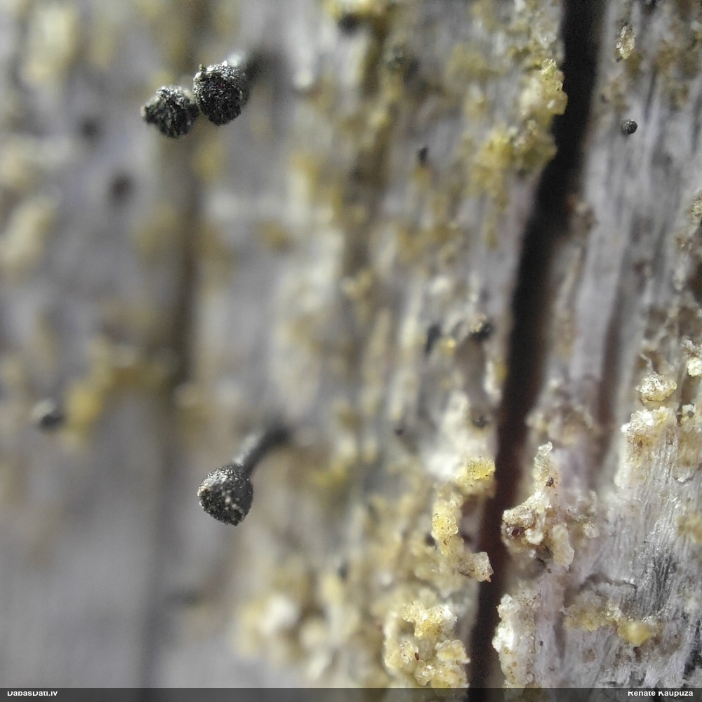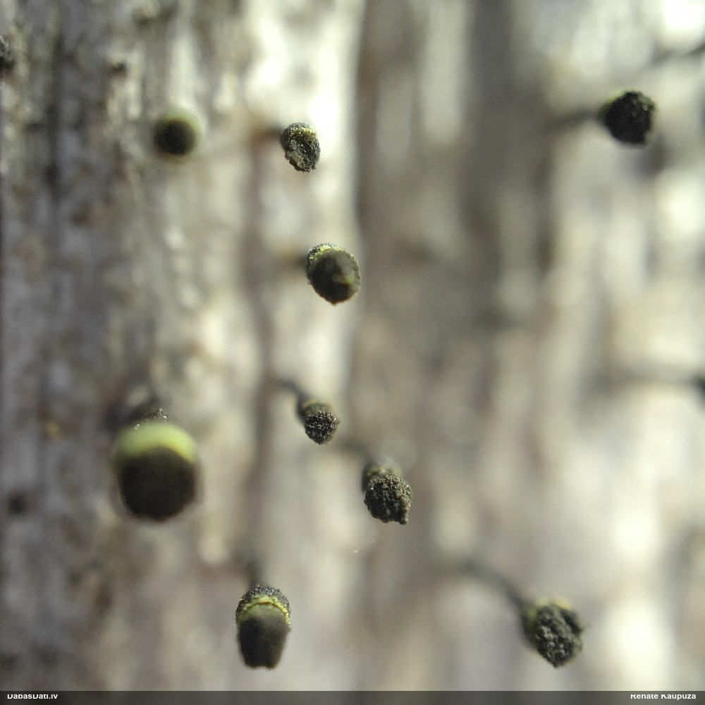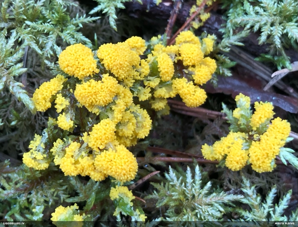 Paldies, Raivo! Ar acu gaišumu man arvien sliktāk, bet mikroskops palīdz. Jā, gribēju teikt, ka paraugam, ja vien nav kāda jutīga atradne, kurai drīkst ievākt tikai mazu gabaliņu, vērts ievākt lielāku gabalu, jo gļotsēnēm patīk kompānija. Un mikroskopa mazajos palielinājumos ar sānu papildus apgaismojumu ir vērts rūpīgi "izstaigāt" visu paraugu. Arī ķērpjus un interesantas sīksēnītes tā var atrast, ko dabā nepamanītu. Ar kriksītēm ir dažādi - pirmās es tā arī tikai citu sugu paraugos pamanīju, bet vēlāk redzēju arī dabā kriskīšu plantācijas - ja to ir daudz, tad var pamanīt jau dabā. Uz sūnām gan ir ekstrēms gadījums, dabā droši nepamanītu, arī eksemplāra noņemšana no sūnas nebija pārāk veiksmīga, tāpēc par noteikšanu mazliet šaubos (sporām mazliet cits tonis). Bet pagaidām citas hipotēzes nav (un konkrētā eksemplāra arī vairs ne).