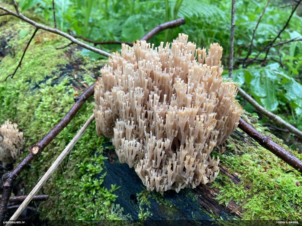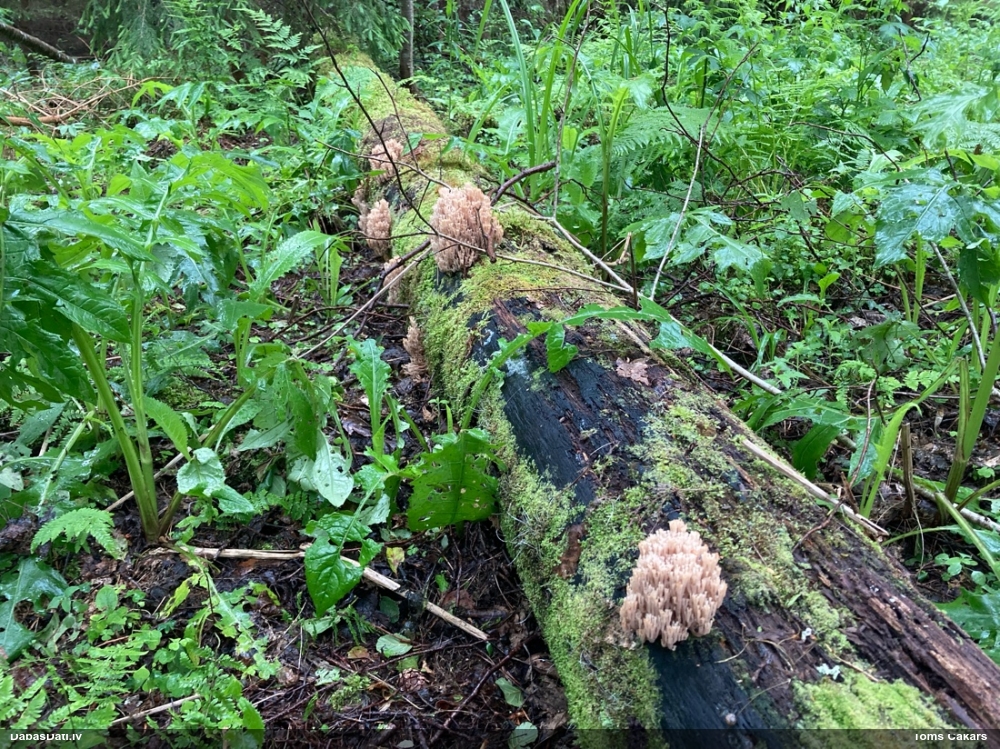 Foto diemžēl nav, bet , cik atceros, auga uz horizontāla paveca nozāģēta celma virsmas. Mežs - jauktu koku, tāda reljefaina vieta :)