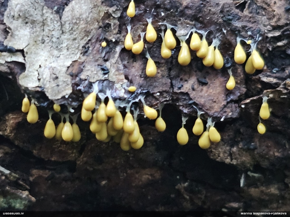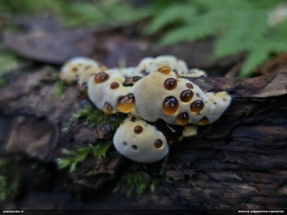 Jā, būtu jauki, ņemot vērā, ka nu jau skaidrāk iezīmējas, uz kā meklēt, un manējais atradums nemaz nebija vēl riktīgi izsporojies, lai arī nobriedis, tā ka arī domāju, ka noteikti cerības vēl ir. Pat šķita, ka manā gadījumā bija arī jaunāki eksemplāri, bet tad atkal sašaubījos, vai tie nav caurspīdīgi-baltgani sveķu pilieni. Ja ir pa vienam gab., tad pārliecība dabā nepavisam nav liela. Varbūt svarīgākais ir ne egles dzīvīgums, bet micēlijs, kas radies uz sveķiem, kas, savukārt, rodas no dzīvām eglēm. Tādā gadījumā drošs fakts ir tikai tas, ka eglei ir jābūt bijušai dzīvai :D. Līdzīgi esmu atradusi arī zeltpūšļu pilienīti Hemitrichia sordivesiculosa, kas raksturīgi aug uz dzīviem lapukokiem, bet es to atradu uz nesen lūzušas apses kritalas. "Dzīva vai nesen dzīva" - varbūt tā var saukt to vajadzīgo statusu.