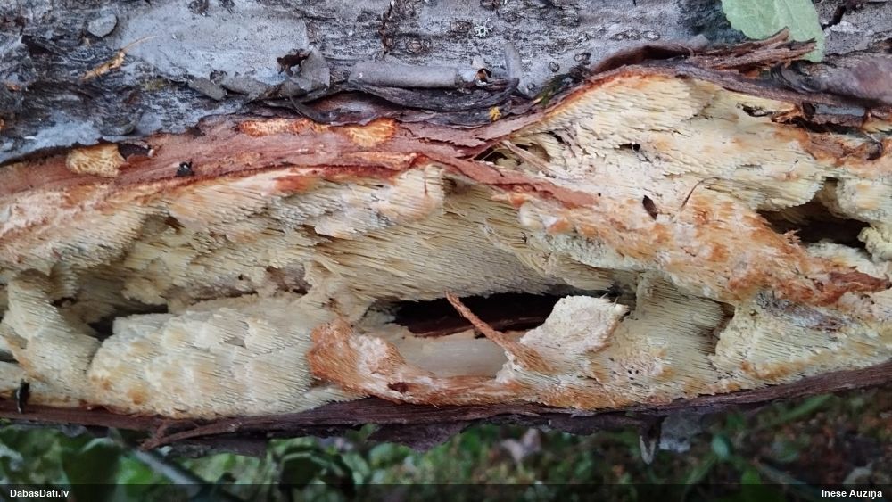 Konkrētā egle vēl joprojām vilka dzīvību, lai gan rētas bija ekstensīvas un noklāja visu stumbru vismaz līdz 2,5m H. Piekrītu, ka aprakstos minētas dzīvu egļu sveķainas rētas, lai gan raksturīgais melnais micēlija tīklojums novērojams arī uz nokaltušiem stumbriem, kamēr vien ir atbilstoši apstākļi tā eksistencei.. Joprojām neesmu atmetis entuziasmu atrast vēl kādu sugas atradni, tuvākajās dienās tiks apsekoti kārtējie biotopi.