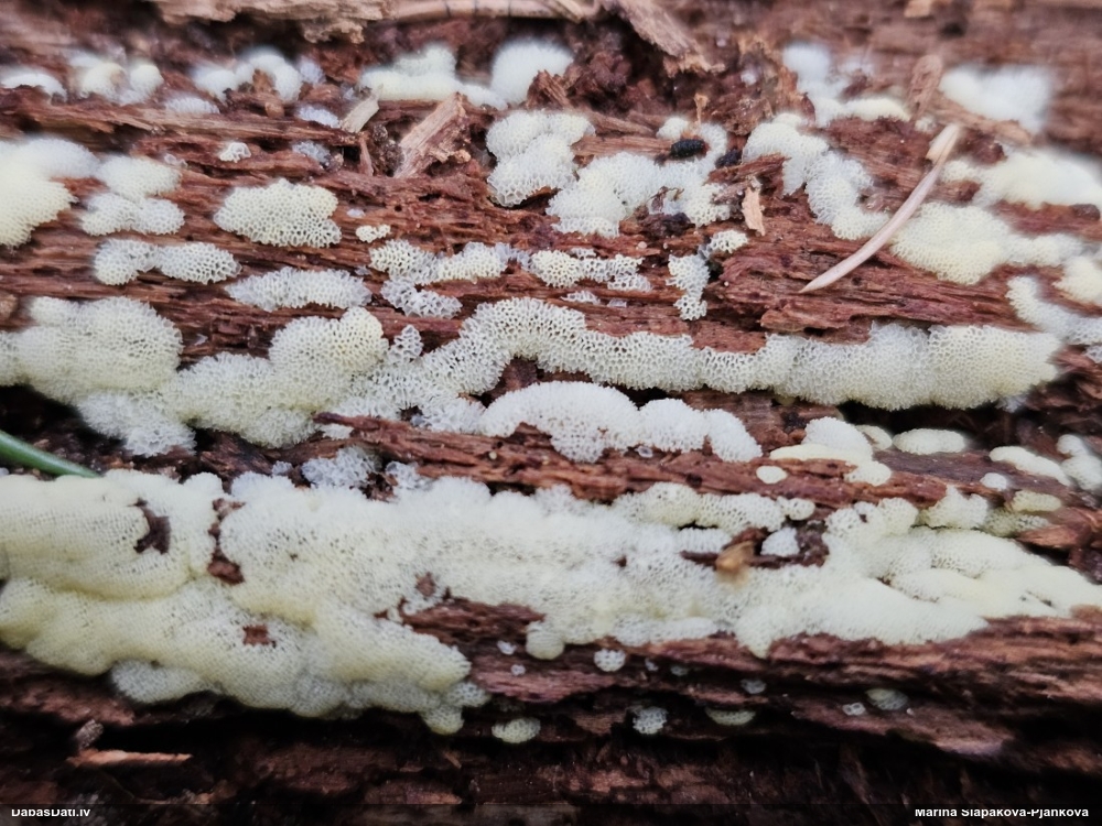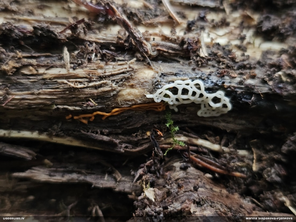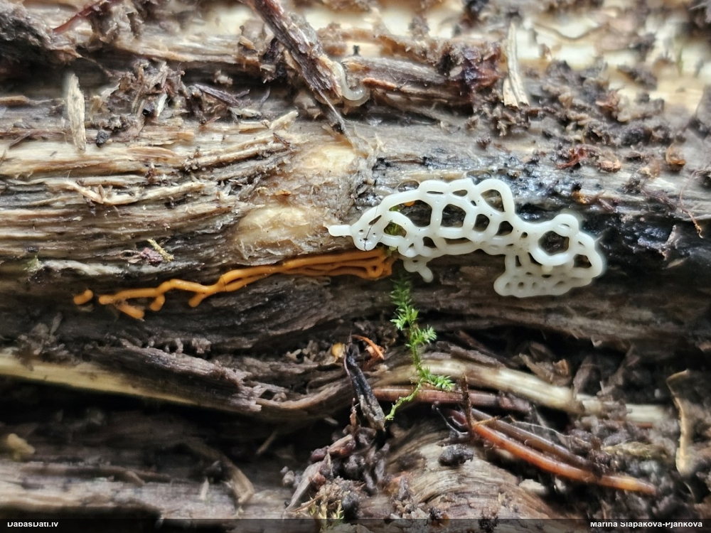 Nu vai tad šis nav Sorocybe resinae micēlijs, uz kura mēdz augt gļotsēne?