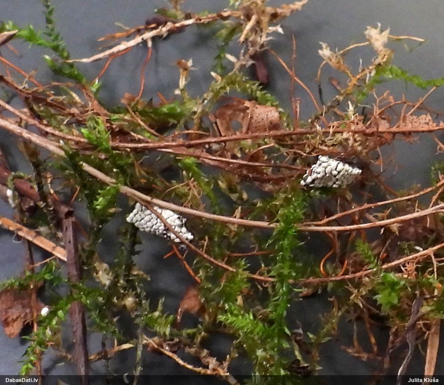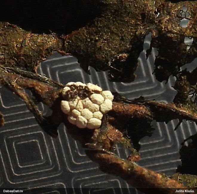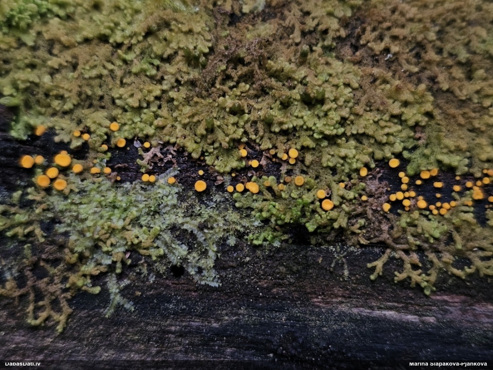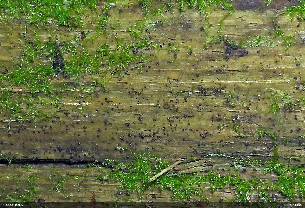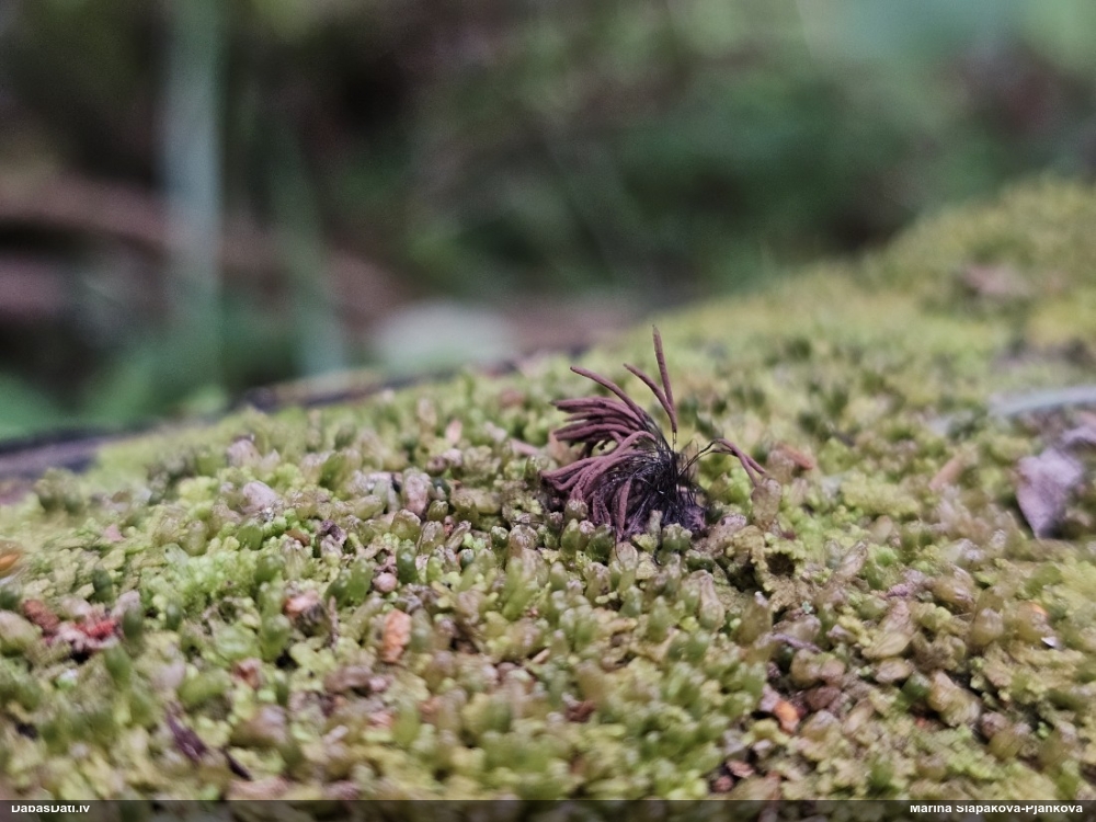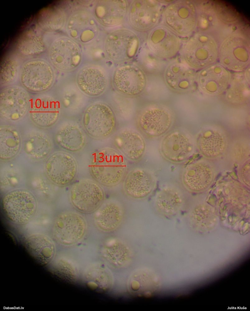 Paldies, Raivo! Ar acu gaišumu man arvien sliktāk, bet mikroskops palīdz. Jā, gribēju teikt, ka paraugam, ja vien nav kāda jutīga atradne, kurai drīkst ievākt tikai mazu gabaliņu, vērts ievākt lielāku gabalu, jo gļotsēnēm patīk kompānija. Un mikroskopa mazajos palielinājumos ar sānu papildus apgaismojumu ir vērts rūpīgi "izstaigāt" visu paraugu. Arī ķērpjus un interesantas sīksēnītes tā var atrast, ko dabā nepamanītu. Ar kriksītēm ir dažādi - pirmās es tā arī tikai citu sugu paraugos pamanīju, bet vēlāk redzēju arī dabā kriskīšu plantācijas - ja to ir daudz, tad var pamanīt jau dabā. Uz sūnām gan ir ekstrēms gadījums, dabā droši nepamanītu, arī eksemplāra noņemšana no sūnas nebija pārāk veiksmīga, tāpēc par noteikšanu mazliet šaubos (sporām mazliet cits tonis). Bet pagaidām citas hipotēzes nav (un konkrētā eksemplāra arī vairs ne).