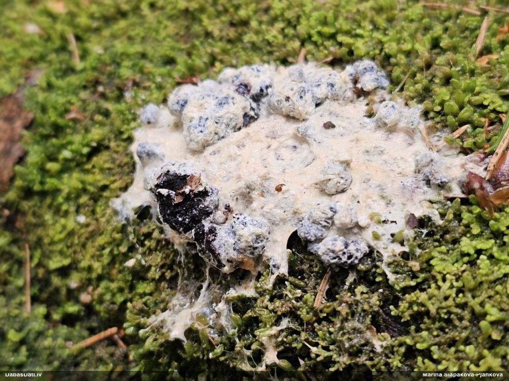 Man šis vairāk izskatās pēc nepilnīgas attīstības (stūrainās sporas arī no tā), tāpēc smalkas detaļas var nebūt precīzas. Priekš Diderma spumarioides atbilst ne tikai pakāje un sporu izmērs, bet arī tipiskais augšanas laiks augustā. Tas, kas mulsina, ir minētā priede, jo citos šīs sugas novērojumos priede nav minēta, un mežs tipiski vairāk nemorāls.