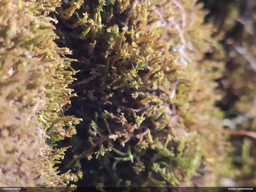 Paldies, Raivo! Ar acu gaišumu man arvien sliktāk, bet mikroskops palīdz. Jā, gribēju teikt, ka paraugam, ja vien nav kāda jutīga atradne, kurai drīkst ievākt tikai mazu gabaliņu, vērts ievākt lielāku gabalu, jo gļotsēnēm patīk kompānija. Un mikroskopa mazajos palielinājumos ar sānu papildus apgaismojumu ir vērts rūpīgi "izstaigāt" visu paraugu. Arī ķērpjus un interesantas sīksēnītes tā var atrast, ko dabā nepamanītu. Ar kriksītēm ir dažādi - pirmās es tā arī tikai citu sugu paraugos pamanīju, bet vēlāk redzēju arī dabā kriskīšu plantācijas - ja to ir daudz, tad var pamanīt jau dabā. Uz sūnām gan ir ekstrēms gadījums, dabā droši nepamanītu, arī eksemplāra noņemšana no sūnas nebija pārāk veiksmīga, tāpēc par noteikšanu mazliet šaubos (sporām mazliet cits tonis). Bet pagaidām citas hipotēzes nav (un konkrētā eksemplāra arī vairs ne).