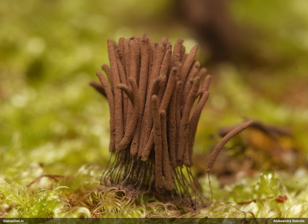 Paldies, Raivo! Ar acu gaišumu man arvien sliktāk, bet mikroskops palīdz. Jā, gribēju teikt, ka paraugam, ja vien nav kāda jutīga atradne, kurai drīkst ievākt tikai mazu gabaliņu, vērts ievākt lielāku gabalu, jo gļotsēnēm patīk kompānija. Un mikroskopa mazajos palielinājumos ar sānu papildus apgaismojumu ir vērts rūpīgi "izstaigāt" visu paraugu. Arī ķērpjus un interesantas sīksēnītes tā var atrast, ko dabā nepamanītu. Ar kriksītēm ir dažādi - pirmās es tā arī tikai citu sugu paraugos pamanīju, bet vēlāk redzēju arī dabā kriskīšu plantācijas - ja to ir daudz, tad var pamanīt jau dabā. Uz sūnām gan ir ekstrēms gadījums, dabā droši nepamanītu, arī eksemplāra noņemšana no sūnas nebija pārāk veiksmīga, tāpēc par noteikšanu mazliet šaubos (sporām mazliet cits tonis). Bet pagaidām citas hipotēzes nav (un konkrētā eksemplāra arī vairs ne).