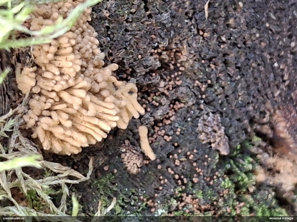 Nu vai tad šis nav Sorocybe resinae micēlijs, uz kura mēdz augt gļotsēne?