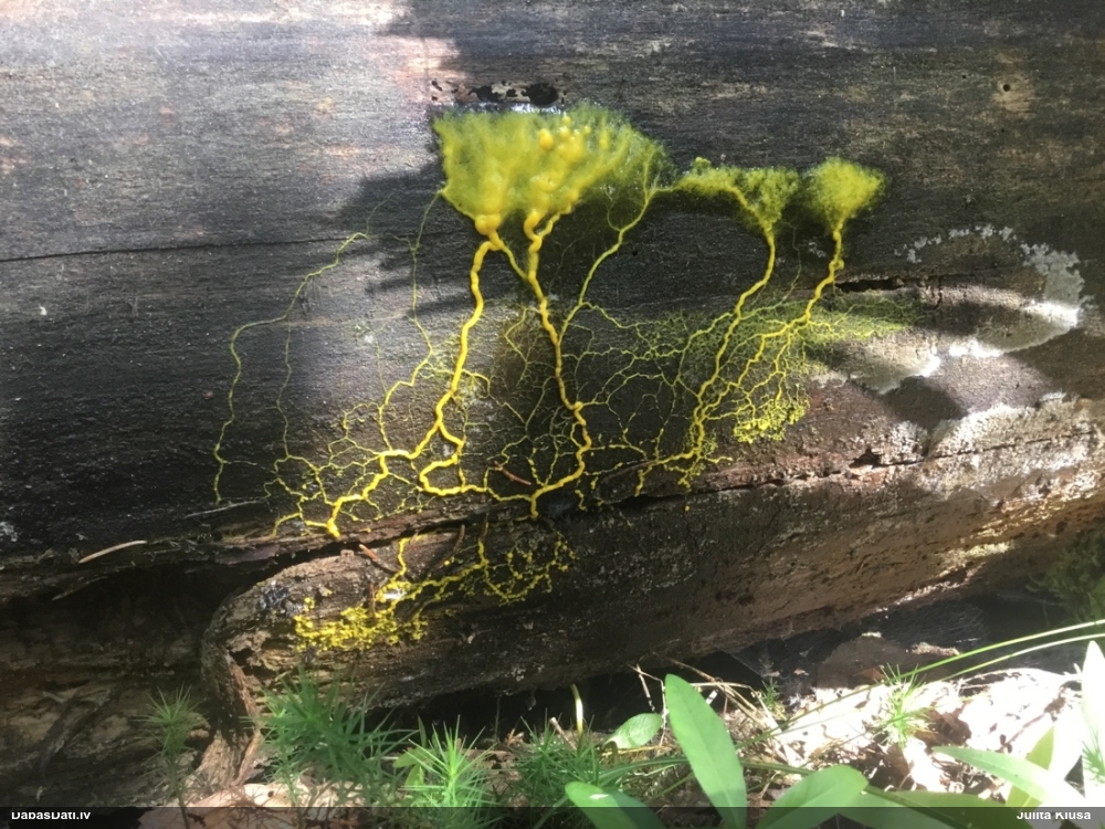 Man šis vairāk izskatās pēc nepilnīgas attīstības (stūrainās sporas arī no tā), tāpēc smalkas detaļas var nebūt precīzas. Priekš Diderma spumarioides atbilst ne tikai pakāje un sporu izmērs, bet arī tipiskais augšanas laiks augustā. Tas, kas mulsina, ir minētā priede, jo citos šīs sugas novērojumos priede nav minēta, un mežs tipiski vairāk nemorāls.