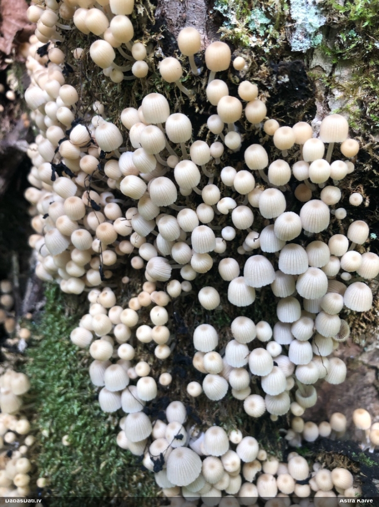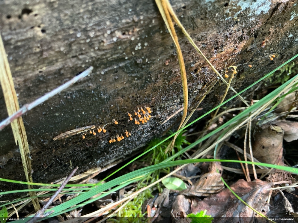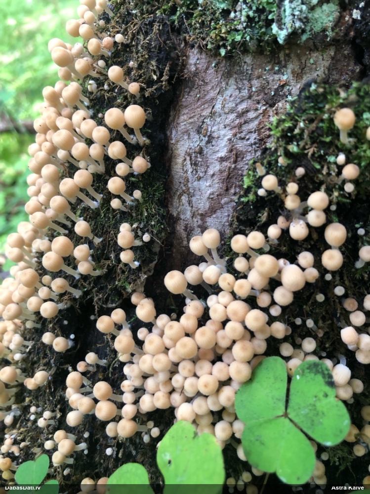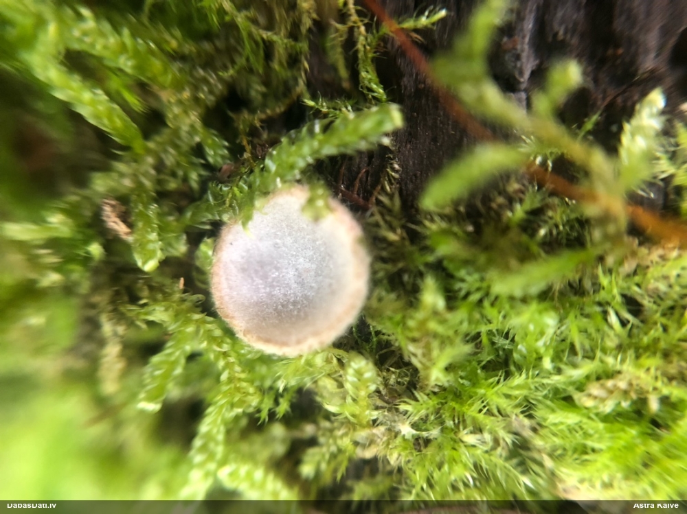 Paldies, Raivo! Ar acu gaišumu man arvien sliktāk, bet mikroskops palīdz. Jā, gribēju teikt, ka paraugam, ja vien nav kāda jutīga atradne, kurai drīkst ievākt tikai mazu gabaliņu, vērts ievākt lielāku gabalu, jo gļotsēnēm patīk kompānija. Un mikroskopa mazajos palielinājumos ar sānu papildus apgaismojumu ir vērts rūpīgi "izstaigāt" visu paraugu. Arī ķērpjus un interesantas sīksēnītes tā var atrast, ko dabā nepamanītu. Ar kriksītēm ir dažādi - pirmās es tā arī tikai citu sugu paraugos pamanīju, bet vēlāk redzēju arī dabā kriskīšu plantācijas - ja to ir daudz, tad var pamanīt jau dabā. Uz sūnām gan ir ekstrēms gadījums, dabā droši nepamanītu, arī eksemplāra noņemšana no sūnas nebija pārāk veiksmīga, tāpēc par noteikšanu mazliet šaubos (sporām mazliet cits tonis). Bet pagaidām citas hipotēzes nav (un konkrētā eksemplāra arī vairs ne).