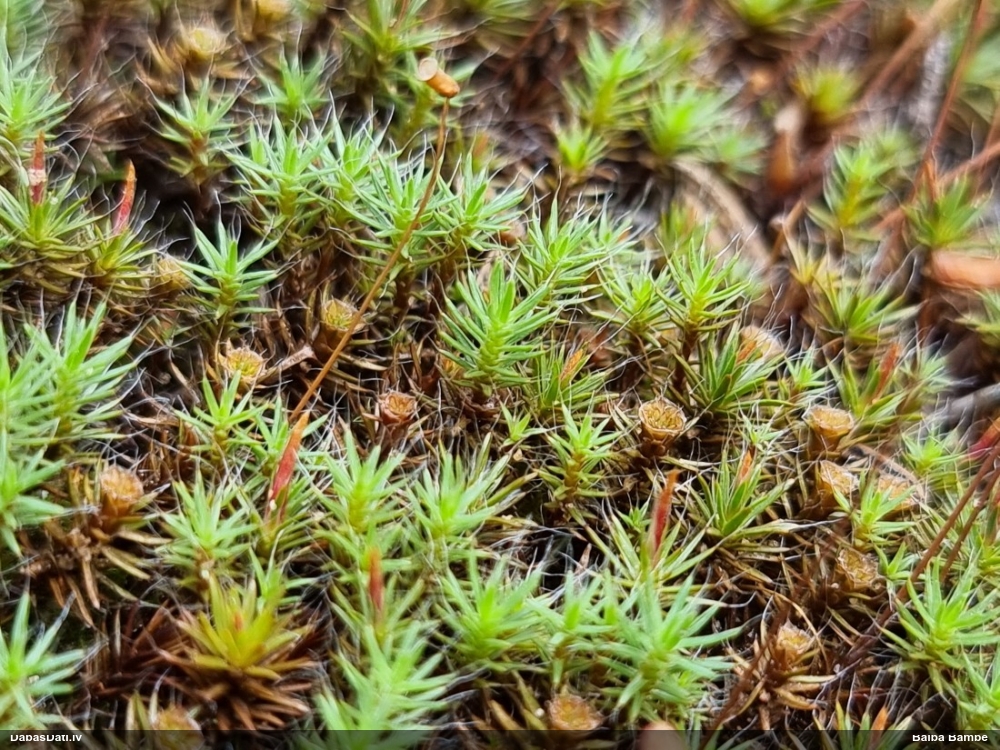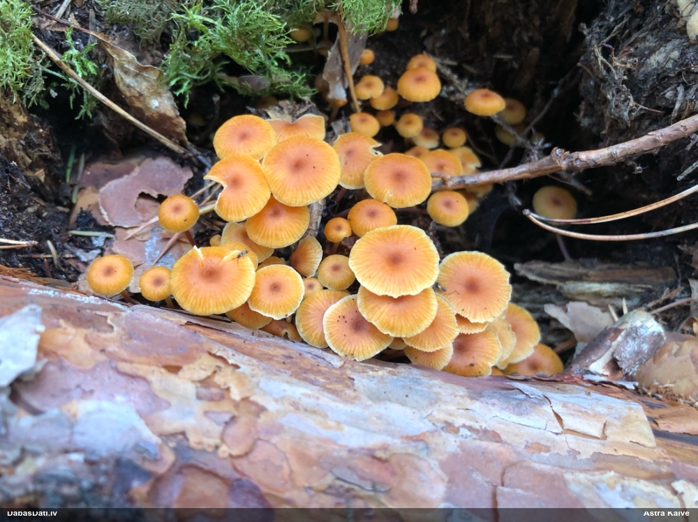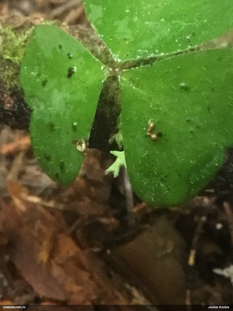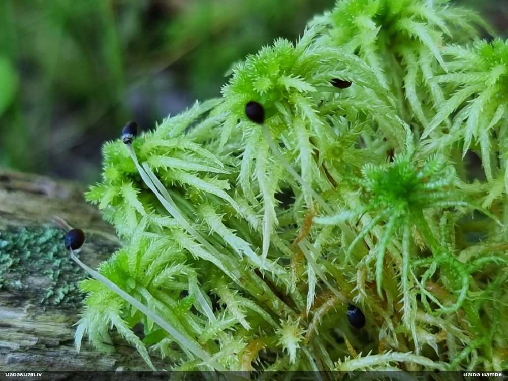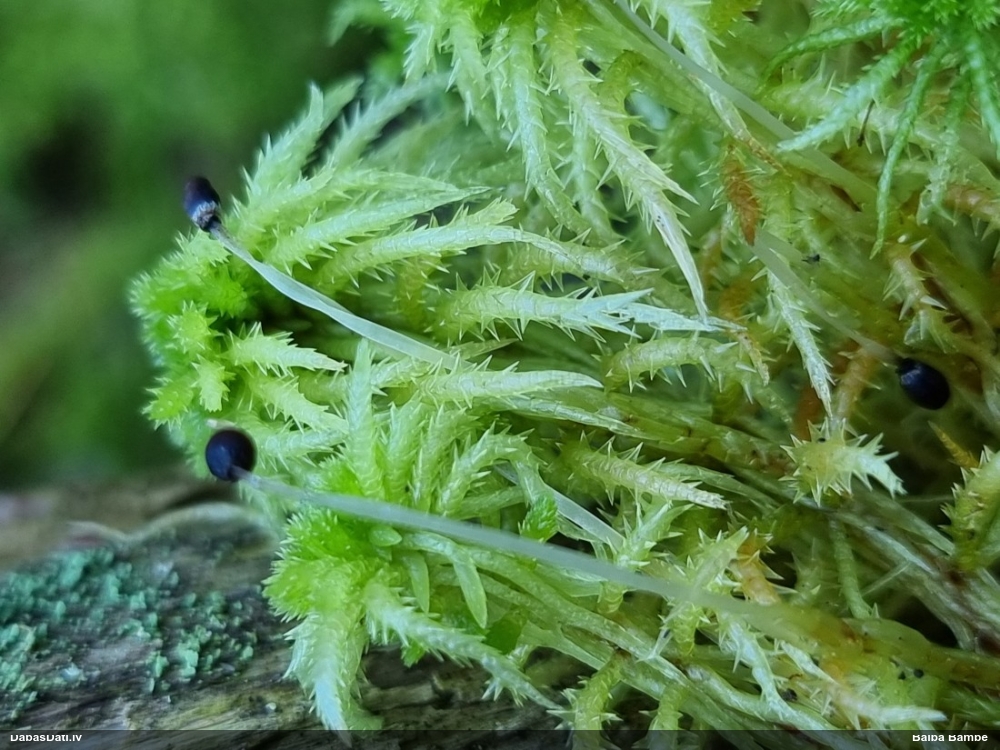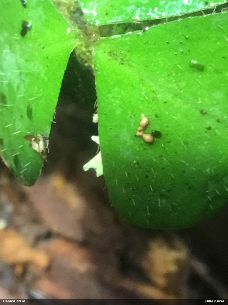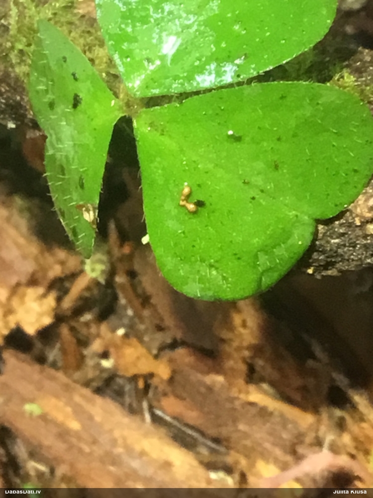 Paldies, Raivo! Ar acu gaišumu man arvien sliktāk, bet mikroskops palīdz. Jā, gribēju teikt, ka paraugam, ja vien nav kāda jutīga atradne, kurai drīkst ievākt tikai mazu gabaliņu, vērts ievākt lielāku gabalu, jo gļotsēnēm patīk kompānija. Un mikroskopa mazajos palielinājumos ar sānu papildus apgaismojumu ir vērts rūpīgi "izstaigāt" visu paraugu. Arī ķērpjus un interesantas sīksēnītes tā var atrast, ko dabā nepamanītu. Ar kriksītēm ir dažādi - pirmās es tā arī tikai citu sugu paraugos pamanīju, bet vēlāk redzēju arī dabā kriskīšu plantācijas - ja to ir daudz, tad var pamanīt jau dabā. Uz sūnām gan ir ekstrēms gadījums, dabā droši nepamanītu, arī eksemplāra noņemšana no sūnas nebija pārāk veiksmīga, tāpēc par noteikšanu mazliet šaubos (sporām mazliet cits tonis). Bet pagaidām citas hipotēzes nav (un konkrētā eksemplāra arī vairs ne).