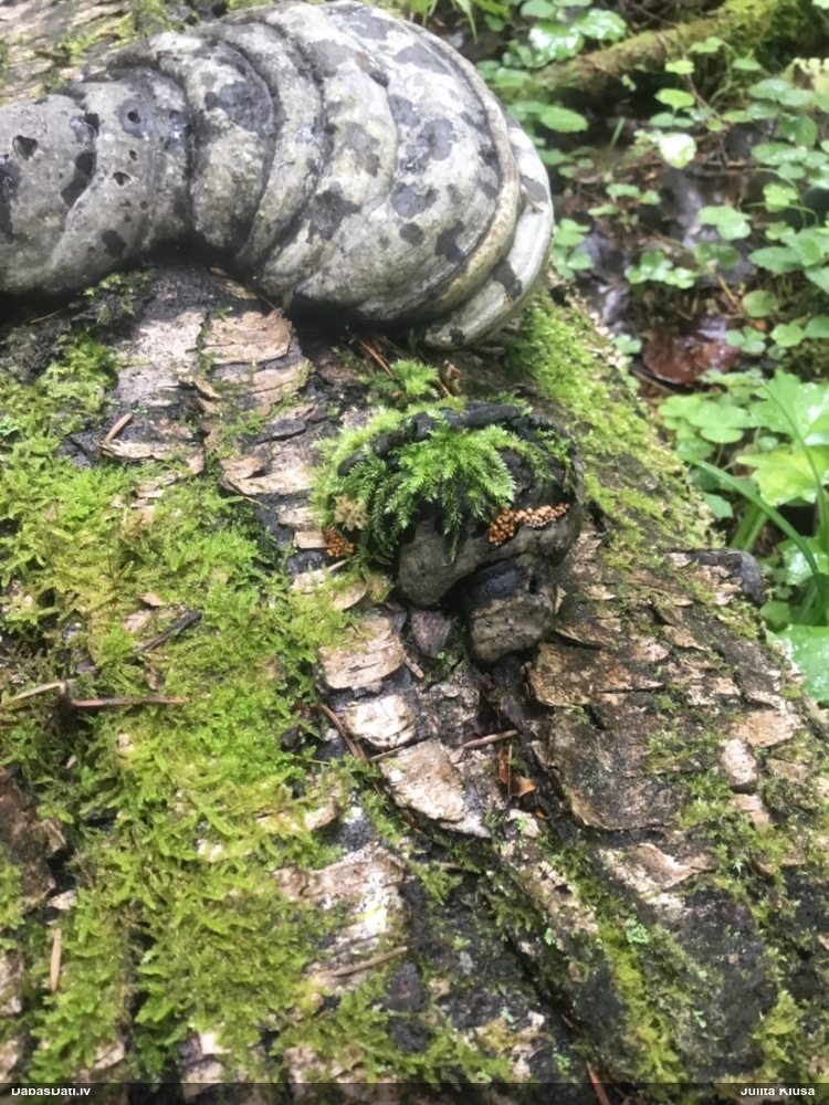 Foto diemžēl nav, bet , cik atceros, auga uz horizontāla paveca nozāģēta celma virsmas. Mežs - jauktu koku, tāda reljefaina vieta :)