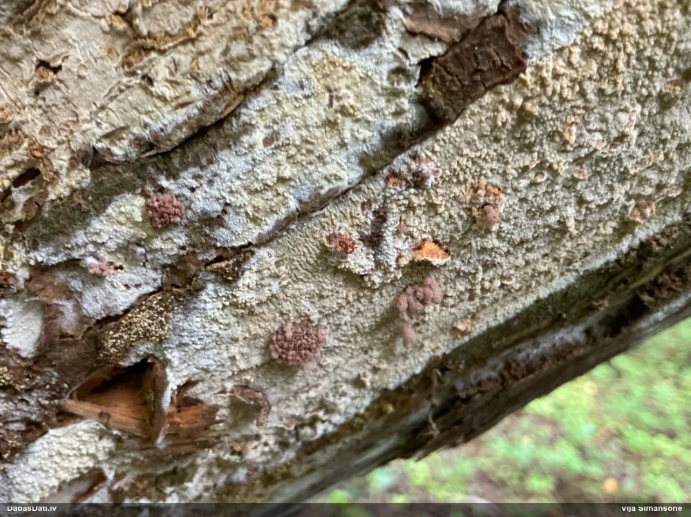 Paldies par paraugu! Paraugā augļķermeņi gan bija ļoti cieti, līdz galam nenobrieduši. Jauna eksemplāra krāsa var būt nozīmīga noteikšanā, bet svarīgi arī nobriedināt (turot mitrākā vietā), citādi perīdiju noņemt mikroskopēšanai ir praktiski neiespējami. Šajā gadījumā mazu gabaliņu izdevās atmiekšķēt un nodabūt, kas sarežģītākos gadījumos varētu būt nepietiekami. Pēc izmēra un perīdija pazīmēm te varētu būt divi varianti L.irregularis un L.epidendrum, kas esot viens no grūtāk atšķiramajiem sugu pāriem. L.epidendrum vairāk raksturīgi, kā es tos saucu, pārstaipi uz augļķermeņa virsmas, kas te ir ļoti labi redzami, tāpēc izšķīros par parastāko sugu.