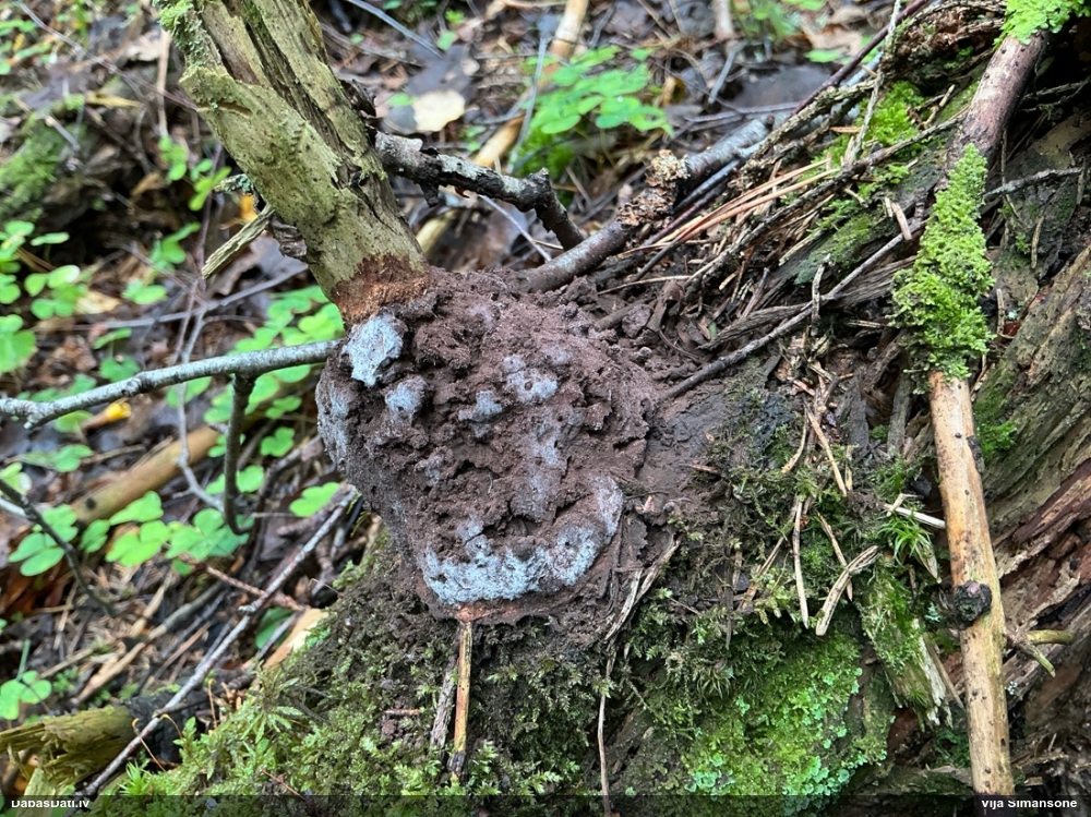 Nu vai tad šis nav Sorocybe resinae micēlijs, uz kura mēdz augt gļotsēne?
