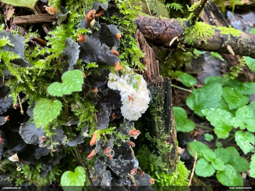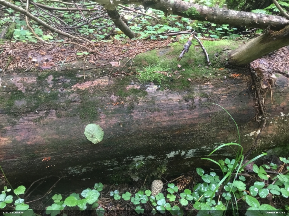 Foto diemžēl nav, bet , cik atceros, auga uz horizontāla paveca nozāģēta celma virsmas. Mežs - jauktu koku, tāda reljefaina vieta :)