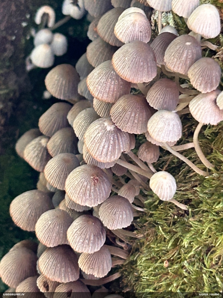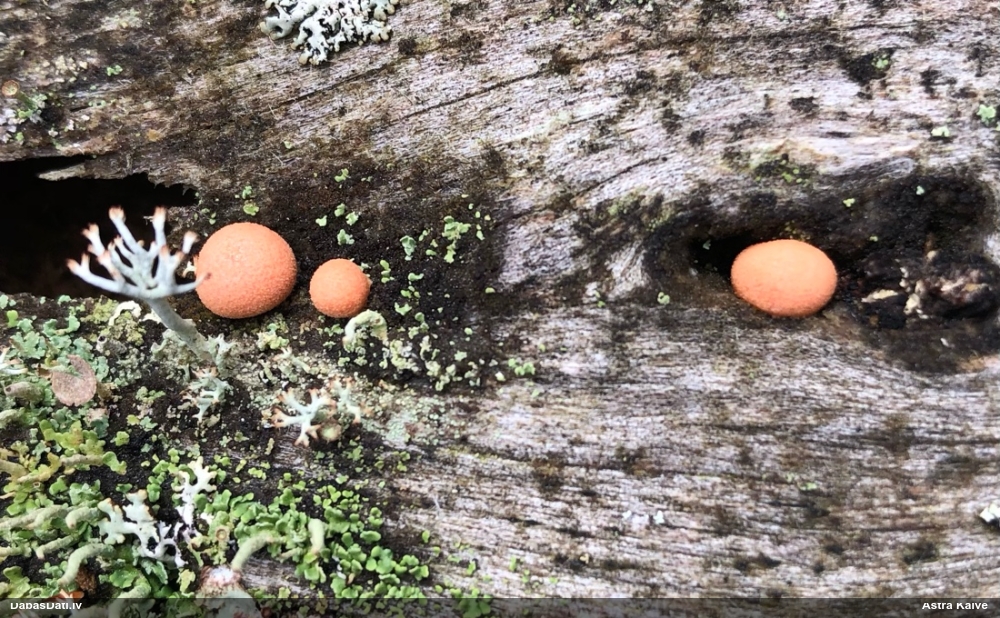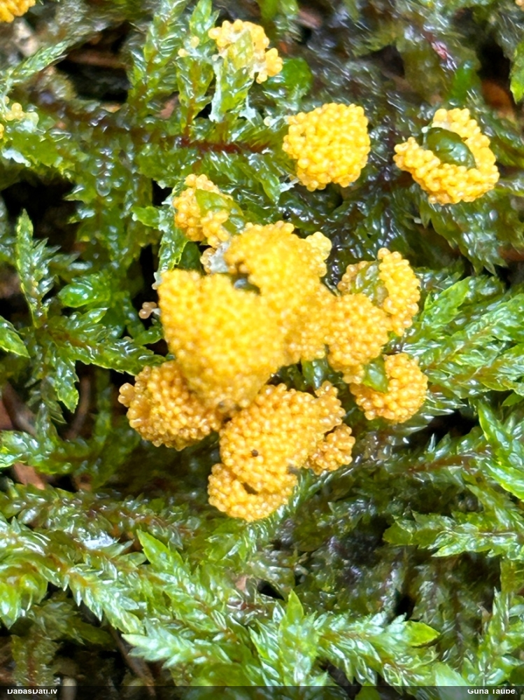Paldies, Raivo! Ar acu gaišumu man arvien sliktāk, bet mikroskops palīdz. Jā, gribēju teikt, ka paraugam, ja vien nav kāda jutīga atradne, kurai drīkst ievākt tikai mazu gabaliņu, vērts ievākt lielāku gabalu, jo gļotsēnēm patīk kompānija. Un mikroskopa mazajos palielinājumos ar sānu papildus apgaismojumu ir vērts rūpīgi "izstaigāt" visu paraugu. Arī ķērpjus un interesantas sīksēnītes tā var atrast, ko dabā nepamanītu. Ar kriksītēm ir dažādi - pirmās es tā arī tikai citu sugu paraugos pamanīju, bet vēlāk redzēju arī dabā kriskīšu plantācijas - ja to ir daudz, tad var pamanīt jau dabā. Uz sūnām gan ir ekstrēms gadījums, dabā droši nepamanītu, arī eksemplāra noņemšana no sūnas nebija pārāk veiksmīga, tāpēc par noteikšanu mazliet šaubos (sporām mazliet cits tonis). Bet pagaidām citas hipotēzes nav (un konkrētā eksemplāra arī vairs ne).