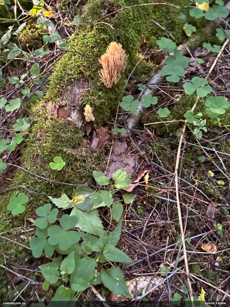 Foto diemžēl nav, bet , cik atceros, auga uz horizontāla paveca nozāģēta celma virsmas. Mežs - jauktu koku, tāda reljefaina vieta :)