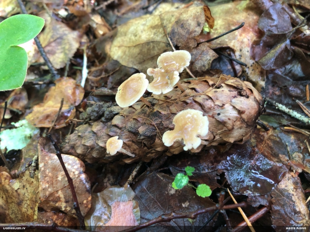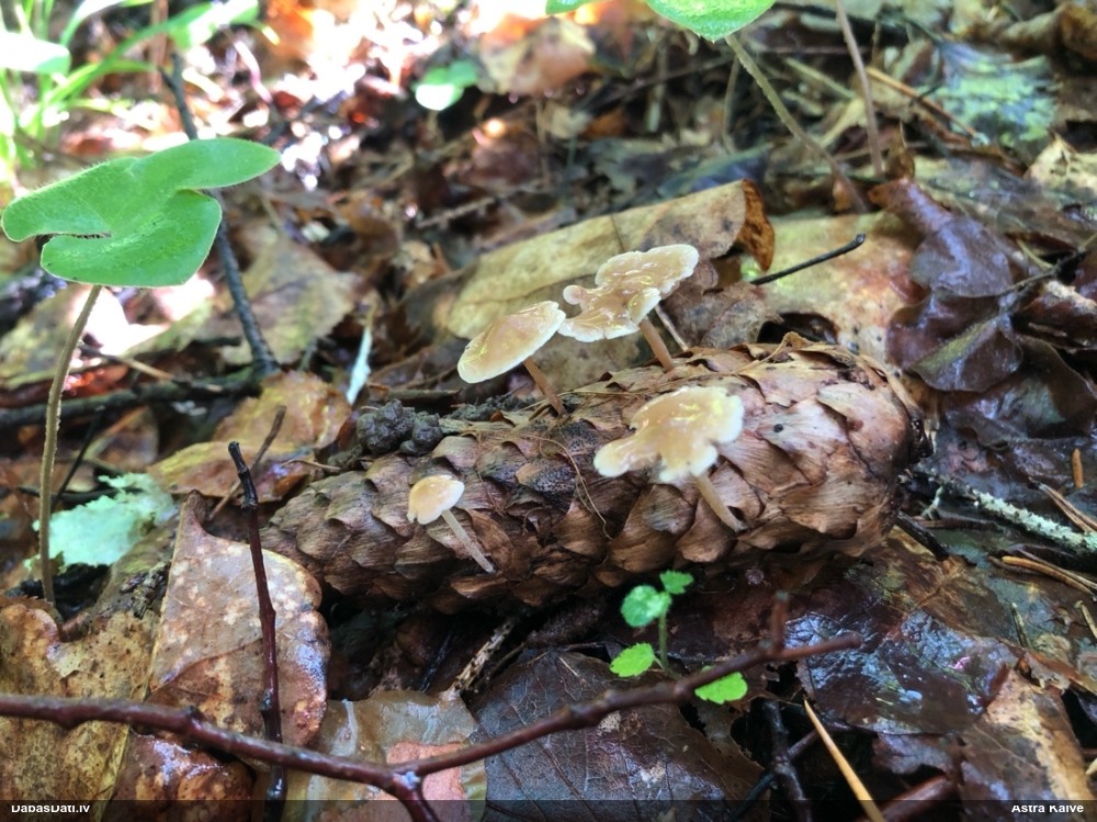 Foto diemžēl nav, bet , cik atceros, auga uz horizontāla paveca nozāģēta celma virsmas. Mežs - jauktu koku, tāda reljefaina vieta :)