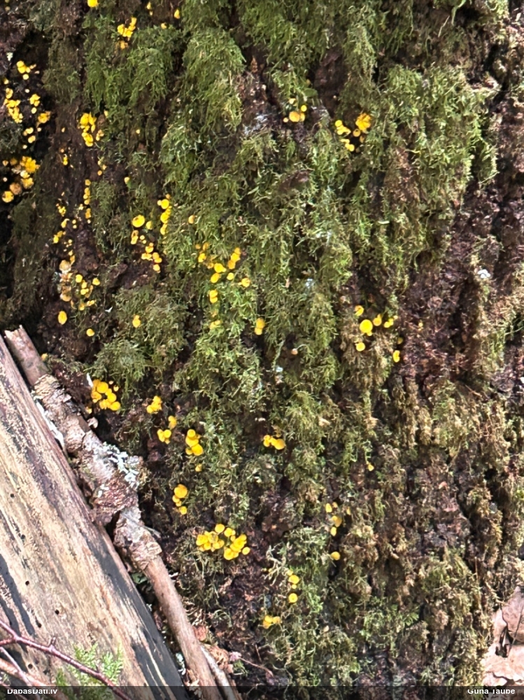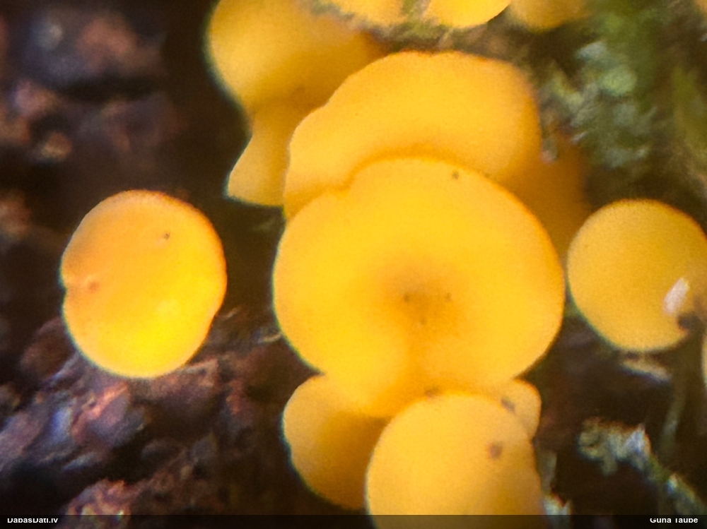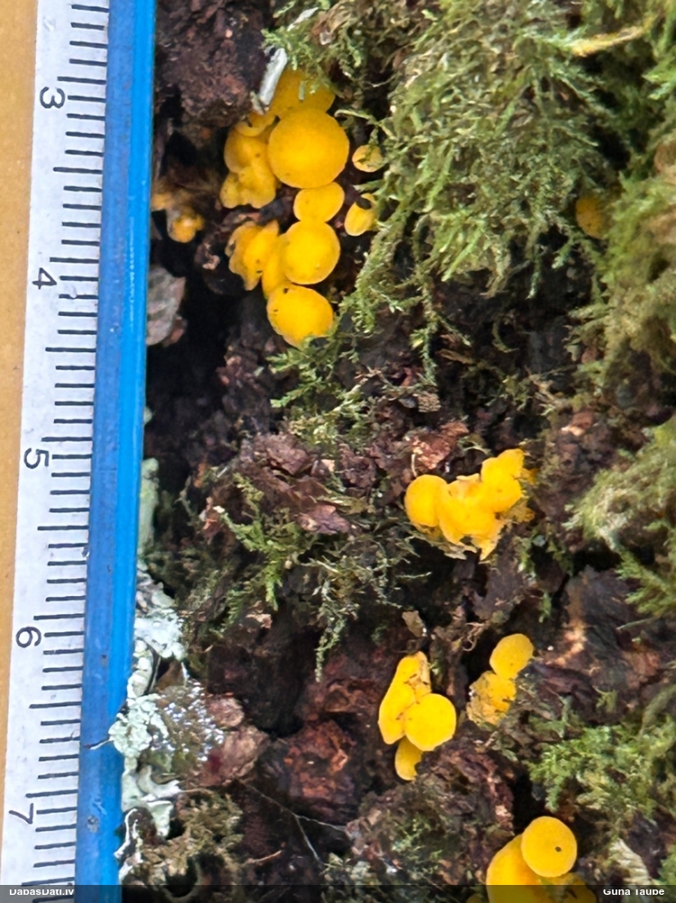 Julitas, šai paņemts paraugs, diezgan izsporojies. Un tai otrai līdzīgajai, kam ieziņots novērojums, arī. Pārliecinājos, ka tiešām egles kritalas. Bet tādu gļotsēņu diezgan daudz, vai uz katras egles kritalas, daudzās vietās stumbram, tagad dzeltenos sporu mākoņus labi redz.