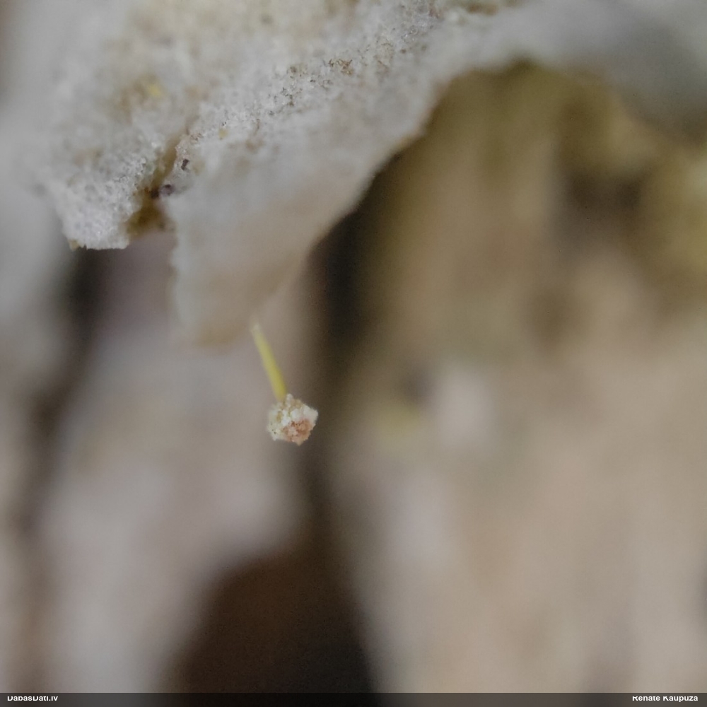Šis man pašai sanāca pārsteigums. Ievācu paraugu ar domu "varbūt tur ir gļotsēne", dodot varbūtību apmēram pusprocentu, ka ir. Bet no mikroskopijas starp galīgi vecām sporām izdevās atrast ne tikai dažas labas, bet, galvenais, arī perfektus kapilīcija fragmentus, no kura suga, vēl kopā ar sporu pazīmēm, nosakāma nešaubīgi.