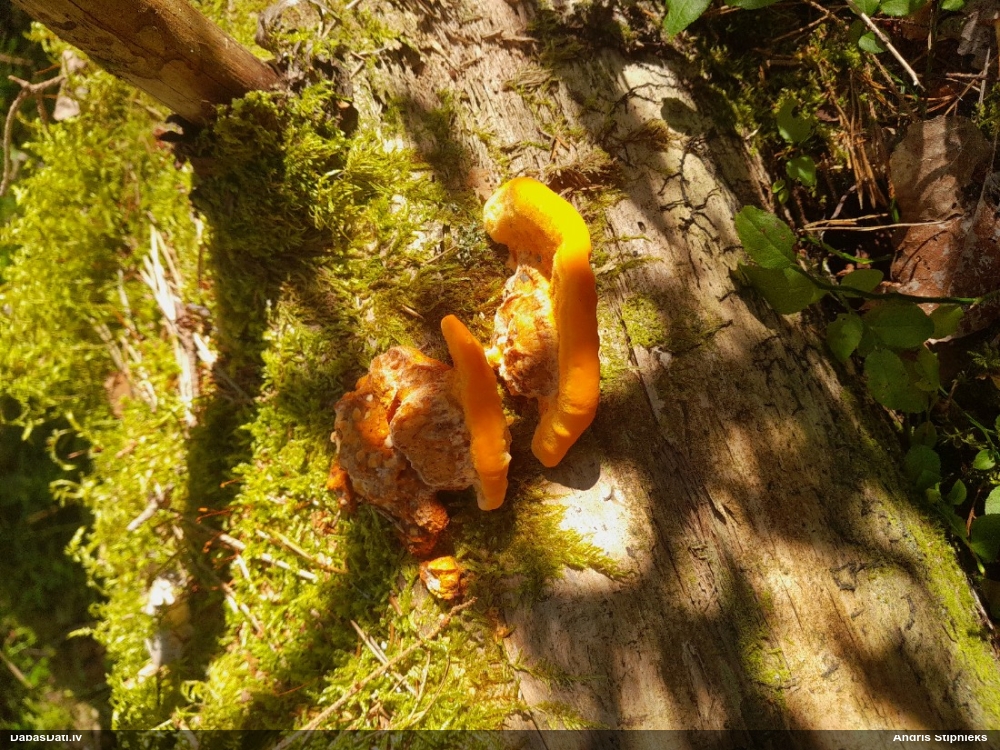 Domāju to Sorocybe resinae, ja tā, tad esmu soli tuvāk mērķim, nu zinu, kā izskatās un kur meklēt. Gļotsēnītes klāt gan nebija.