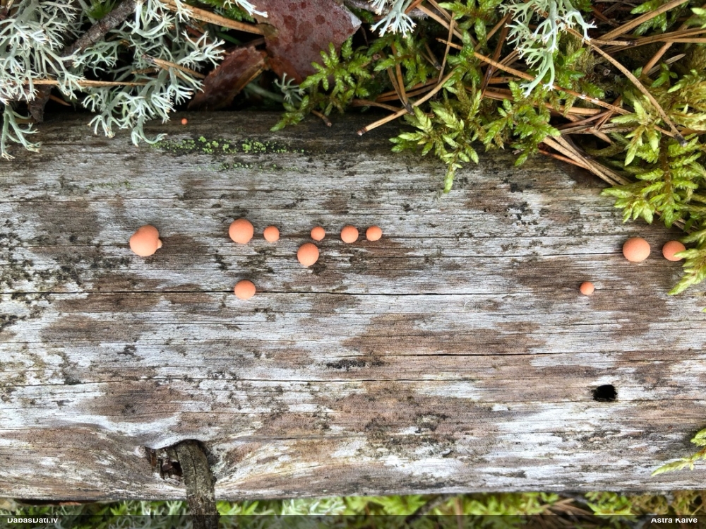 Šobrīd varu iedomāties 2 variantus - melnā plaispika Amaurochaete atra vai parastais gļotpūpēdis Reticularia lycoperdon. Pēc izmēra, augšanas laika un augšanas uz apstrādāta koka atbilst abas.