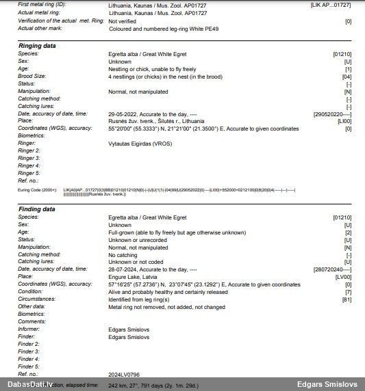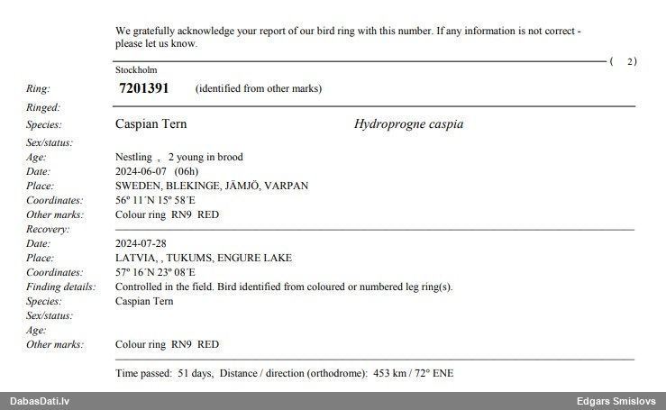 Gredzenošanas vieta: Bišumuiža, Rīga Gredzenošanas datums: 22.05.2025