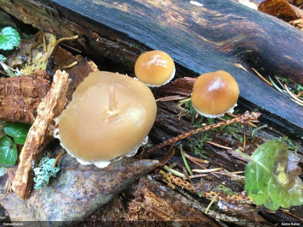Domāju to Sorocybe resinae, ja tā, tad esmu soli tuvāk mērķim, nu zinu, kā izskatās un kur meklēt. Gļotsēnītes klāt gan nebija.