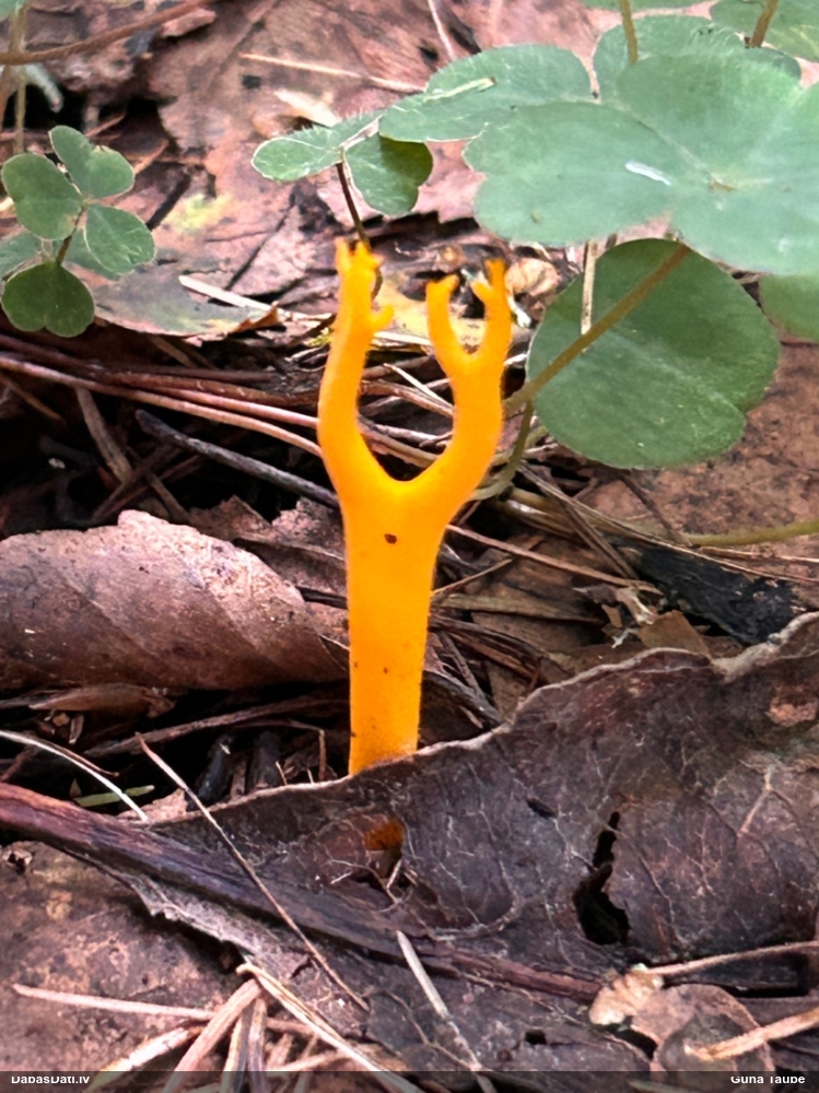 Teiktu, ka medainā bumbulīte. Redz vertikāli izstieptus augļķermeņus (ne pilienveida).